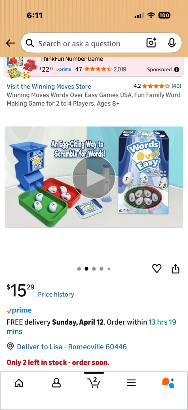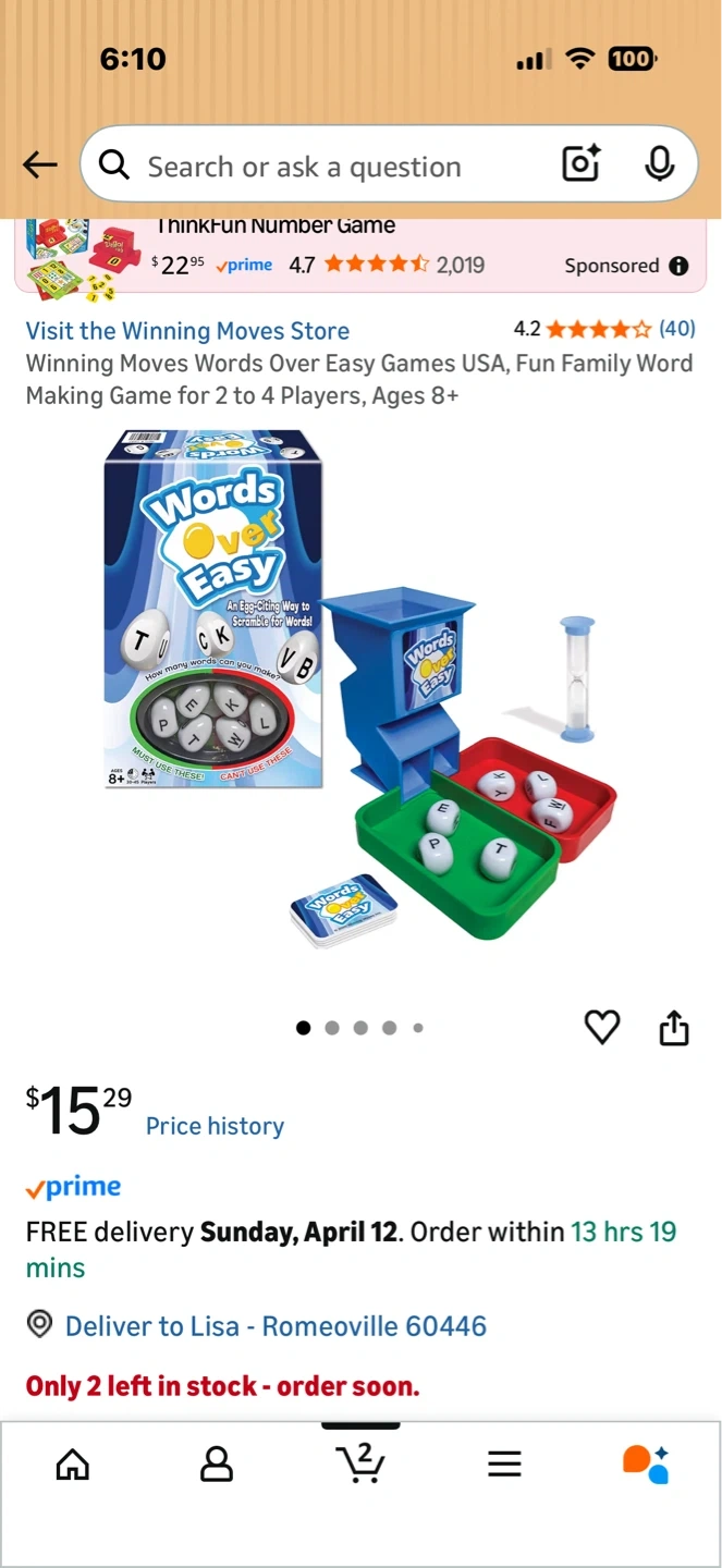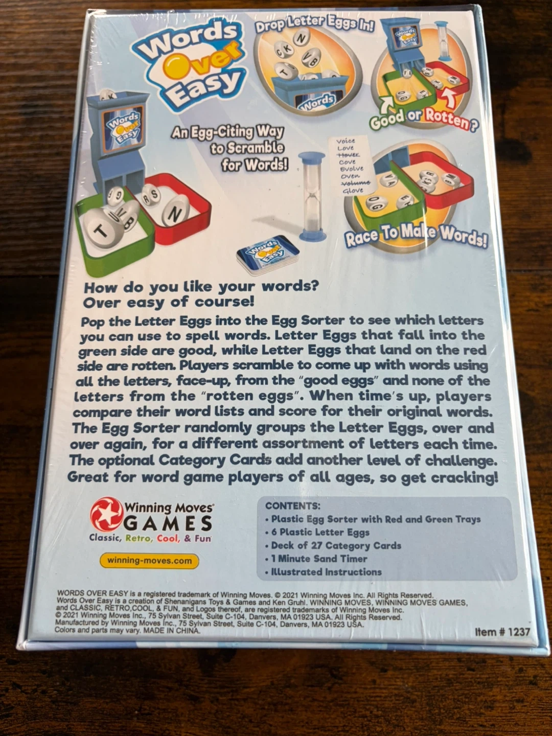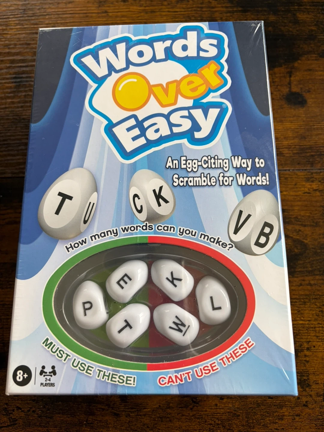 An egg-citing way to scramble for words! This game includes a plastic egg sorter, red and green trays, 6 plastic letter eggs, and a sand timer. It's for 2 to 4 players, ages 8 and up. Great for word game players of all ages!