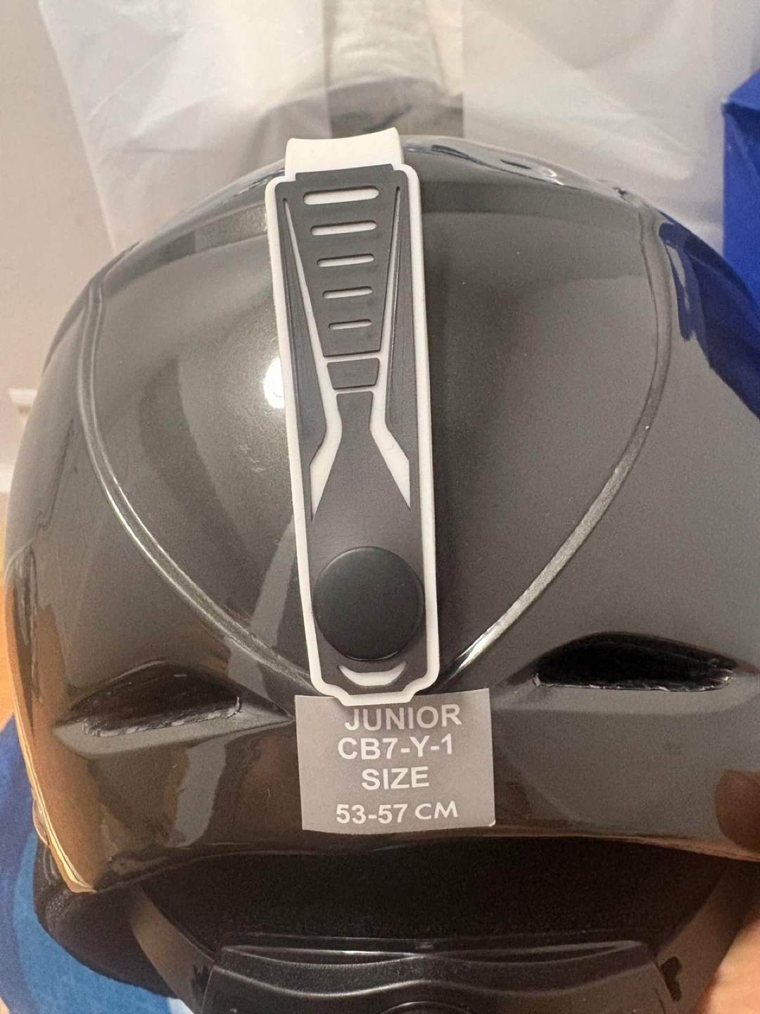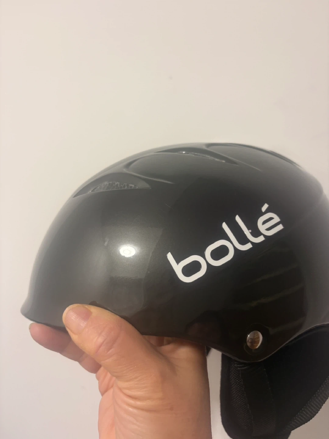 This is a black Bolle junior ski helmet. It's size 53-57 cm, perfect for youth skiers. It's designed for safety and comfort on the slopes!