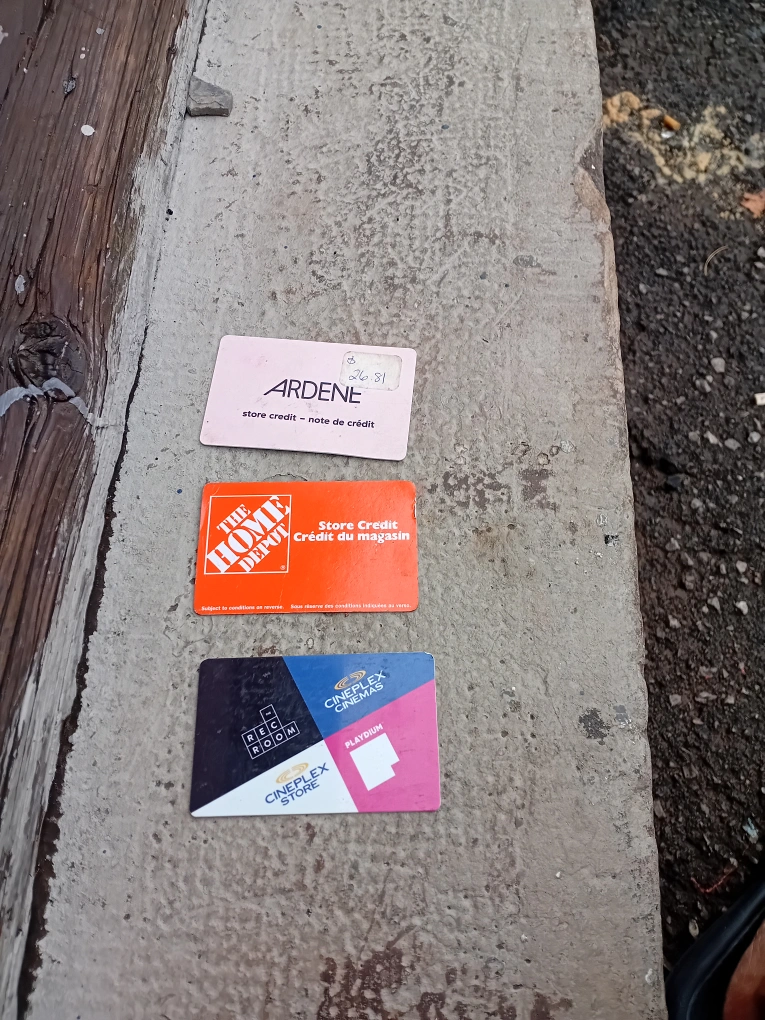 Selling a few giftcards I don't need! Includes an Ardene store credit, a Home Depot store credit, and a Cineplex giftcard for movies and snacks Ardene-26.81 home depo- 30.53 cinneplex-25 will sell single or deal for all 3