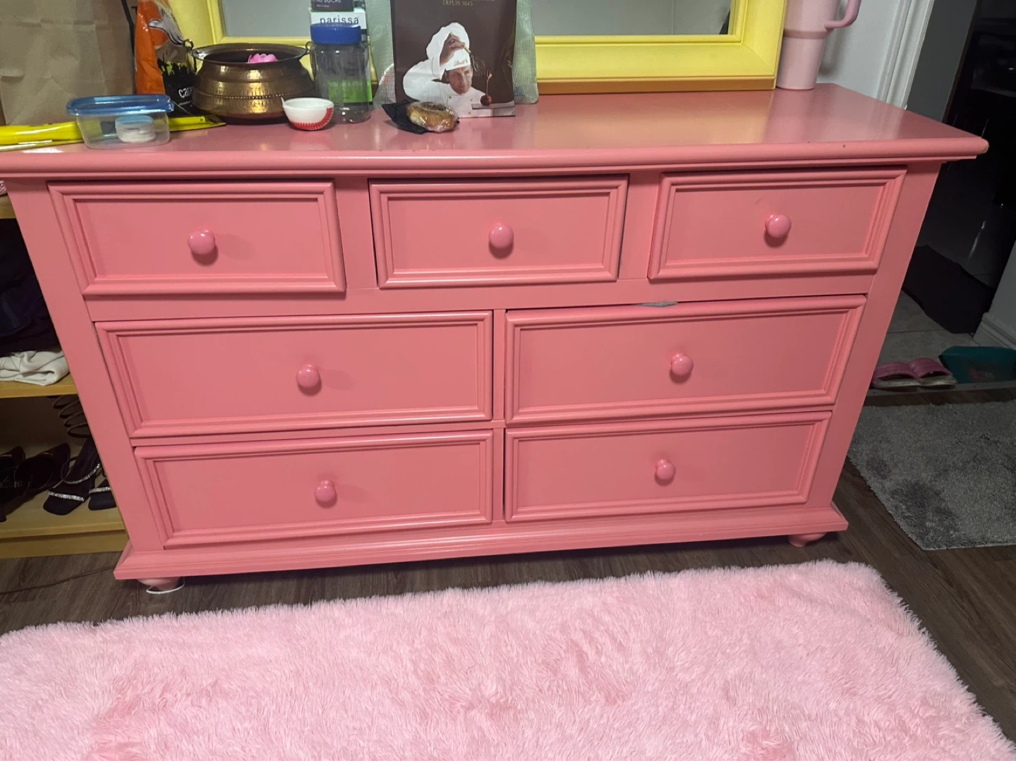 Pink Dresser with 7 Drawers
