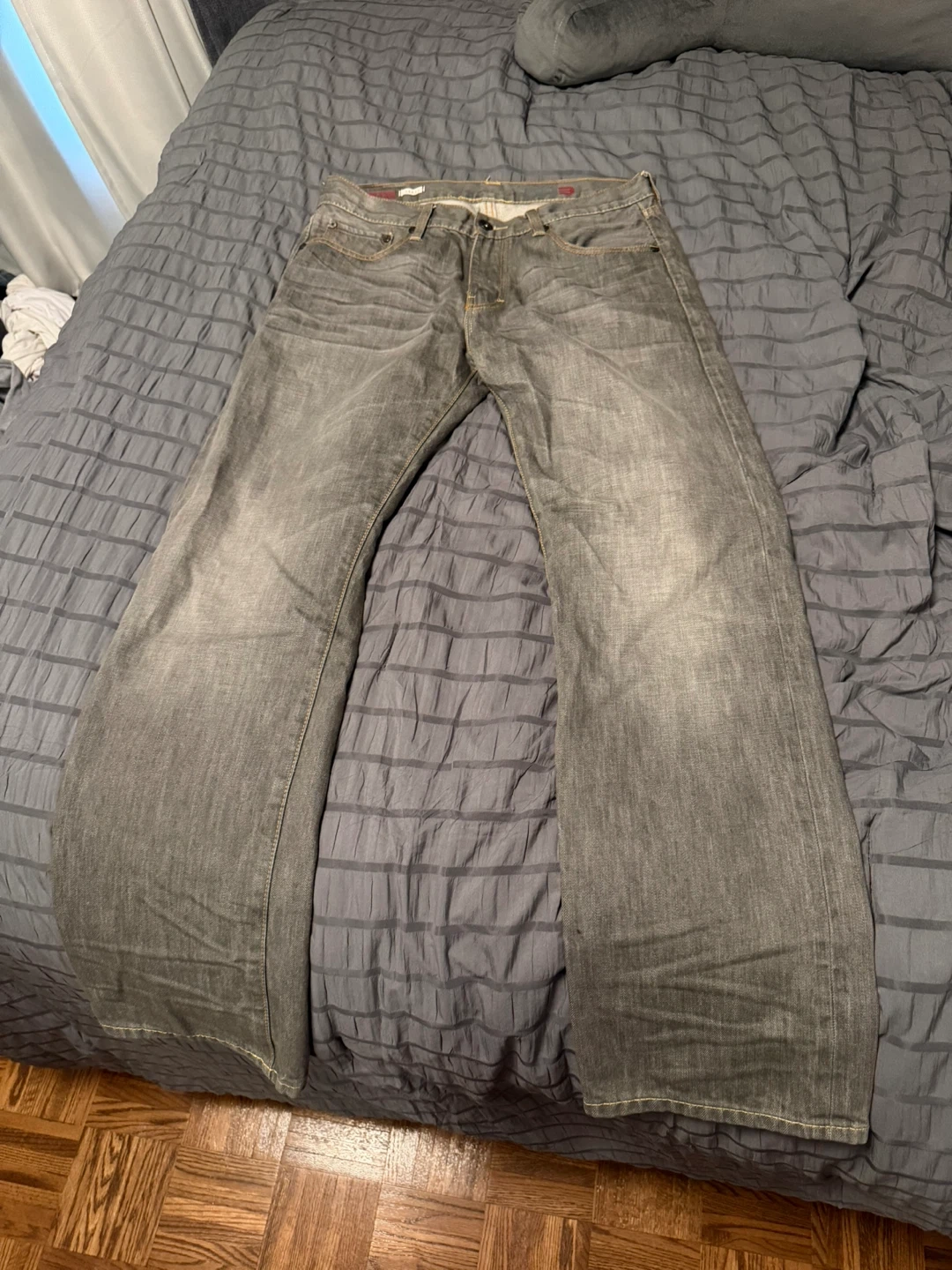 Buy & SellTAKE 34x32 Grey Jeans with Cross & Chain GraphicTAKE 34x32 Grey Jeans with Cross & Chain Graphic$48These are men's grey denim jeans from TAKE. They feature a distinctive white cross and chain graphic on the back of the legs. The size is 34x32.ConditionNewBrandTAKEWHERE TO MEETVaughanView MapSELLERverifiedjoeyWoodbridge650 reviews0 chats·0 favorites·2 viewsSEND CHAT TO SELLERHi joey! I’m interested in your listing.Hi joey! I’m interested in your listing.Get the Karrot app to chatSign In to chat