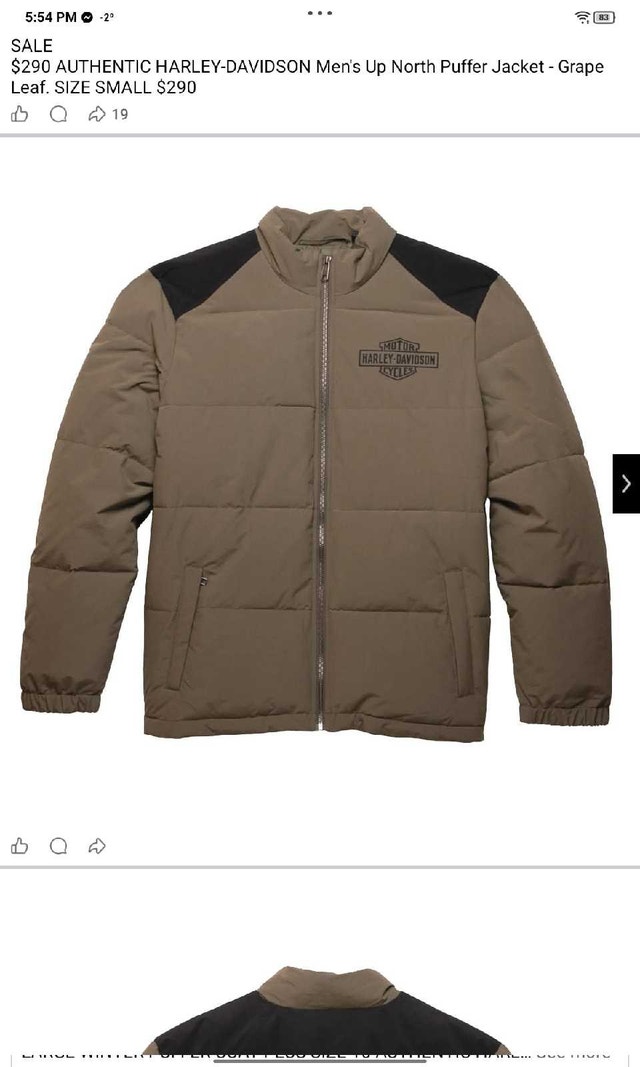 Keep the cold at bay with this stylish Harley-Davidson men's Up North puffer jacket in a size small. This jacket features a unique grape leaf colour with black accents, showcasing the iconic Harley-Davidson logo on the back. Brand: Harley-Davidson. Size: Small. Colour: Grape Leaf with Black Accents. Style: Puffer Jacket. New condition. Cash accepted.