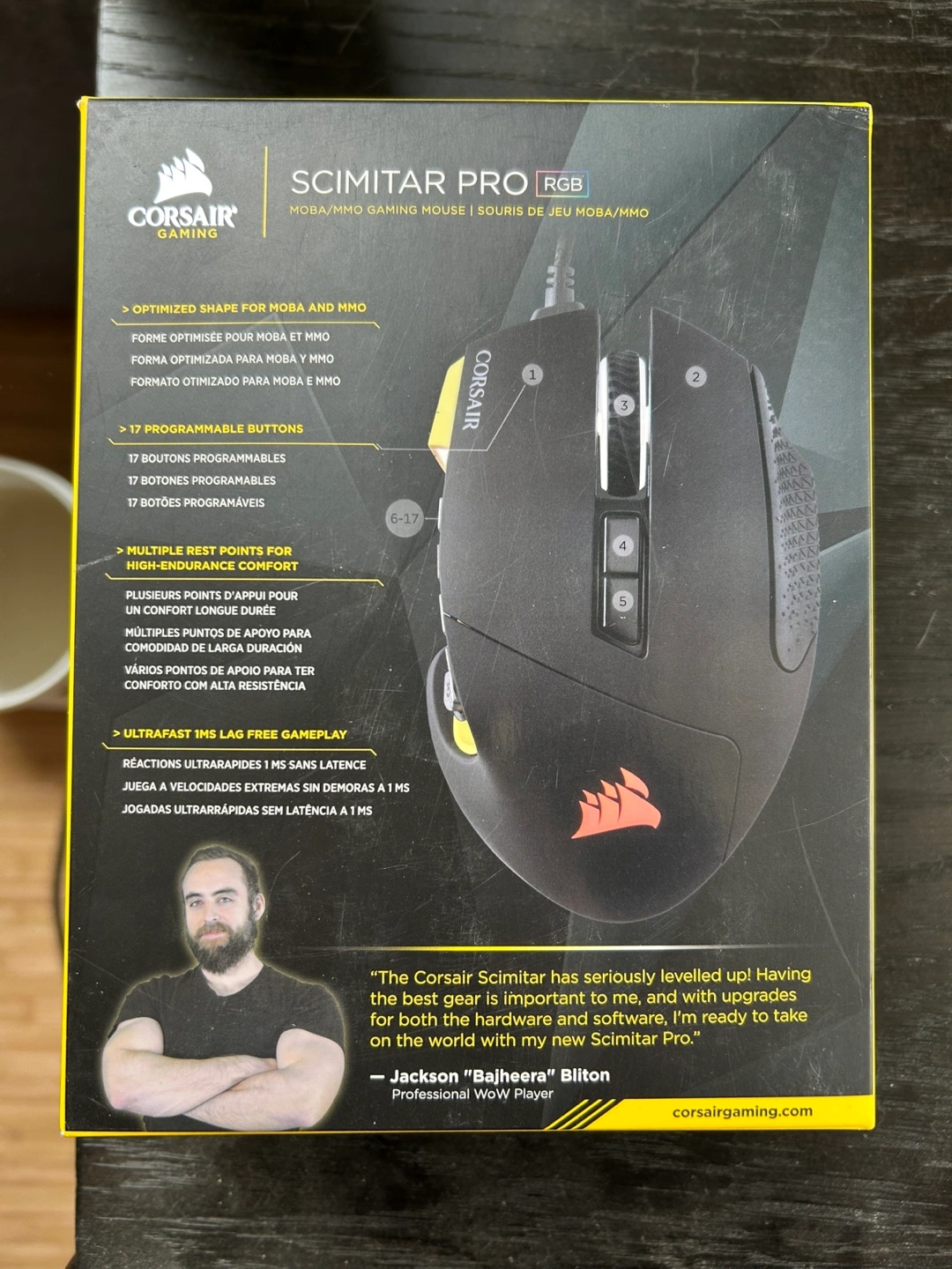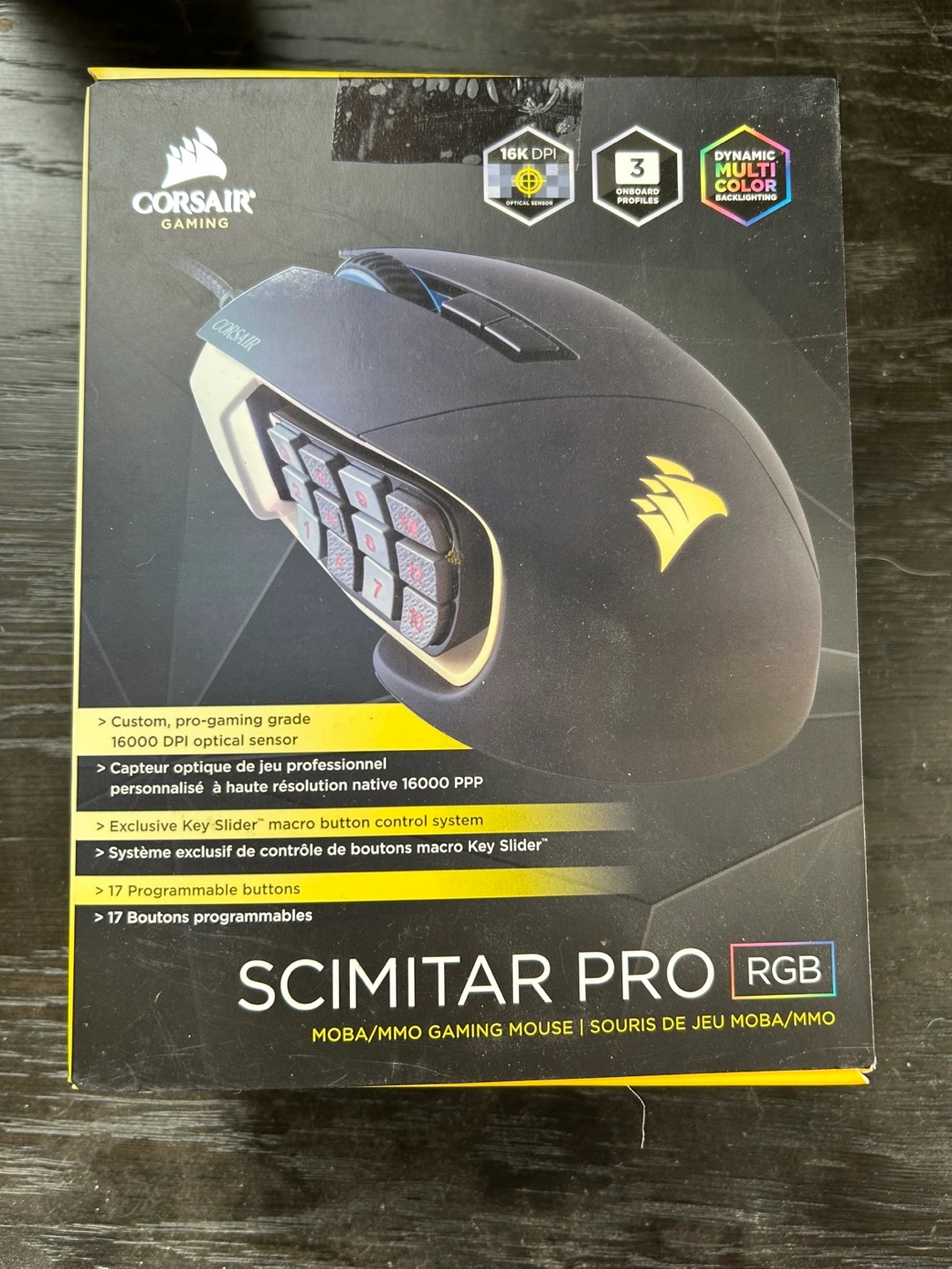 Corsair gaming mouse, Custom, pro-grade gaming mouse. 16000 DPI optical sensor. Exclusive Key Slider macro button control system. 17 programmable buttons. Optimized shape for MOBA and MMO. Multiple rest points for high-endurance comfort. Ultrafast 1ms lag-free gameplay.