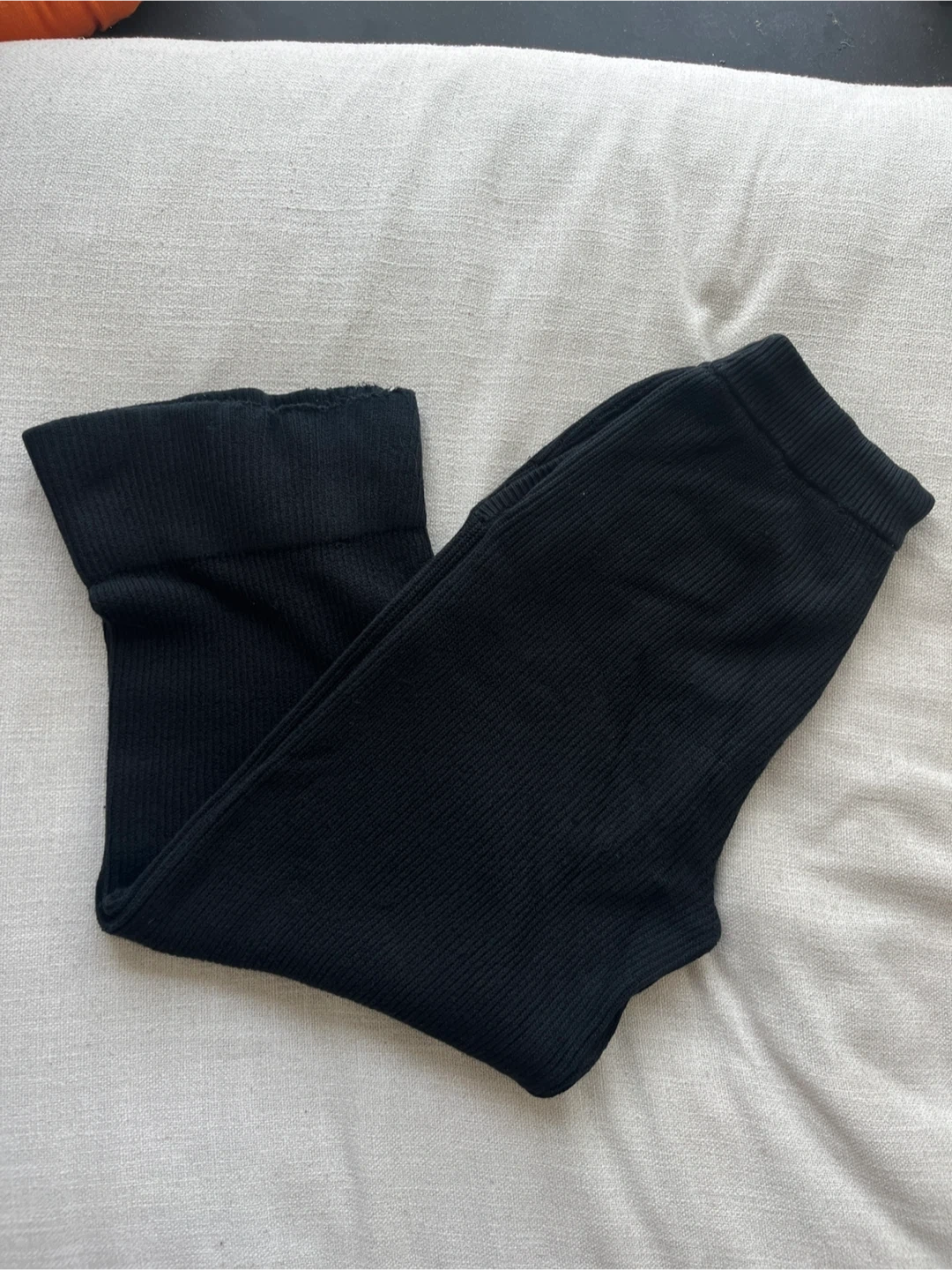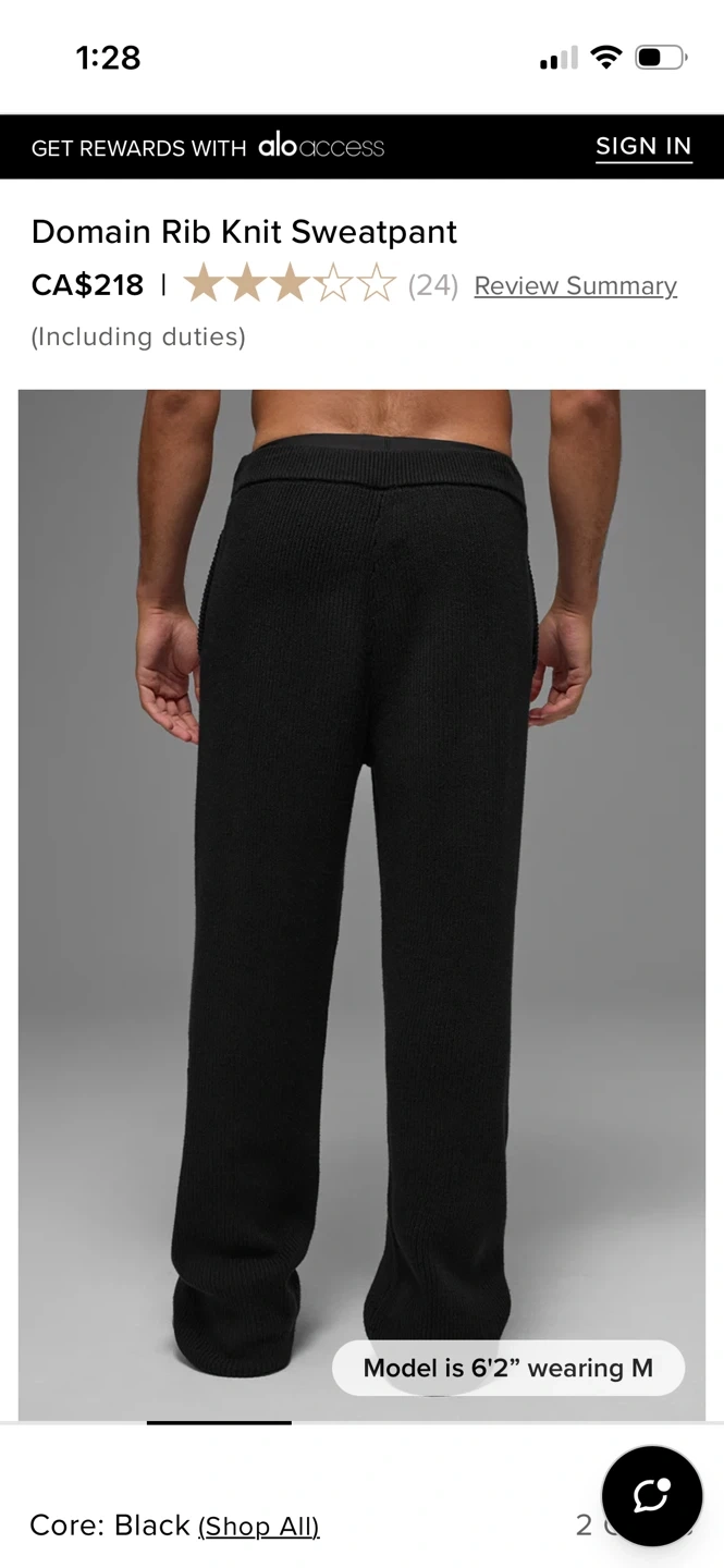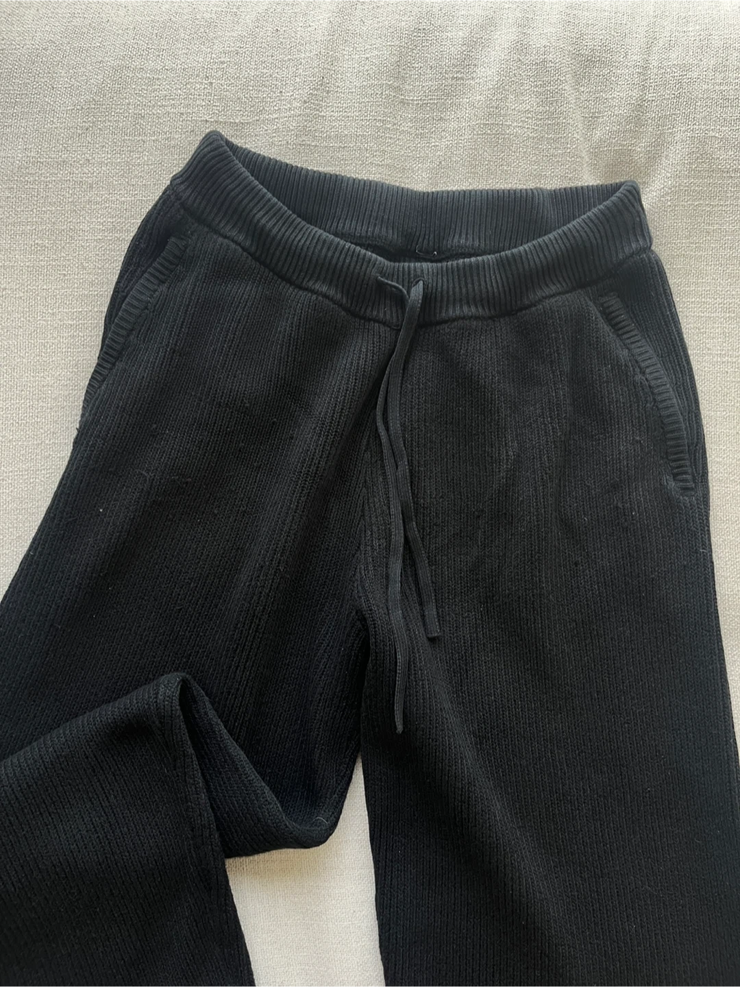 Alo Black Domain Rib Knit Sweatpants. They're made with a comfortable ribbed knit fabric. These pants feature a drawstring waist and zippered pockets. Bought from Alo at Eaton Centre and the condition is fairly good. Size was tagged M but can fit anyone up to a large. I’m small and worn these tighter with the drawstrings.