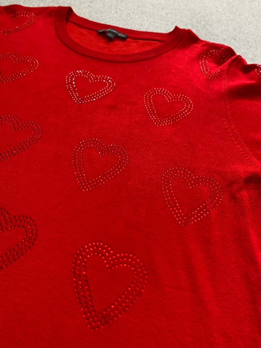 Adrianna Papell Red Heart Embellished Sweater XL