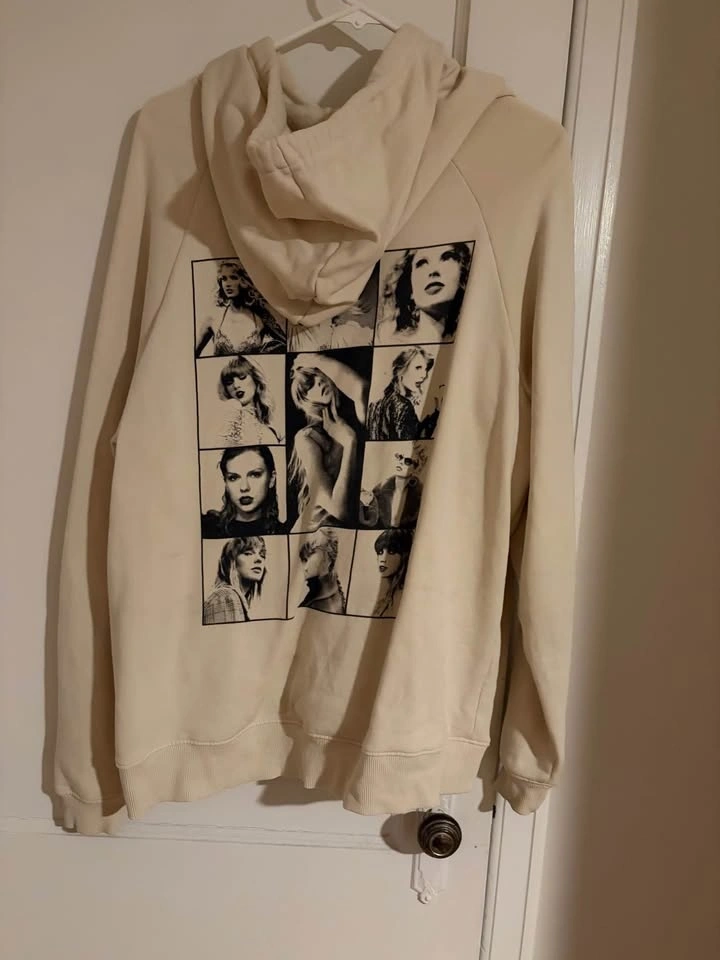 Official Taylor Swift merchandise. Size small beige eras tour hoodie. Black and white Tortured Poets version on the back. Bought at the Eras Tour in Toronto. Pick up near Yonge and Lawrence.