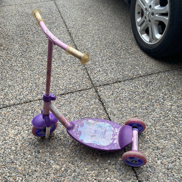 This adorable Disney Princess three-wheel scooter is perfect for little ones aged 3-6 years, offering a fun and safe way to develop their coordination and balance. It has some cosmetic wear from regular use, but is still fully functional and ready for new adventures! * Character: Disney Princess * Type: 3-Wheel Scooter * Recommended Age: 3-6 years And remember, if the ad is up, the scooter is ready to roll into your driveway! Pick up in SW Airdrie or Country Hills NE Calgary.