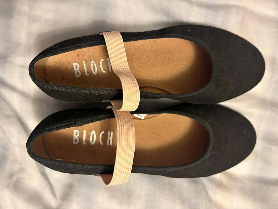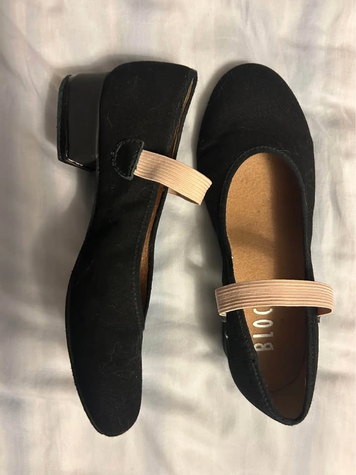 5Girls black canvas ballet, character, shoes, Bloch brand, size 4.5. Retails for $70. Wore one season— excellent condition with normal wear on the soles.