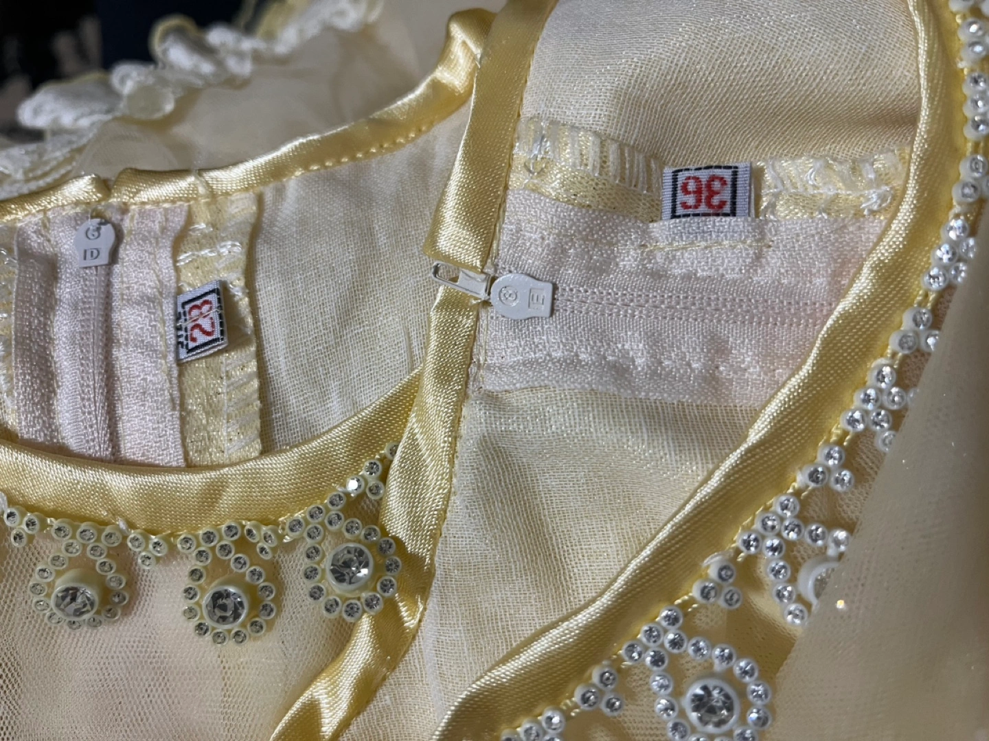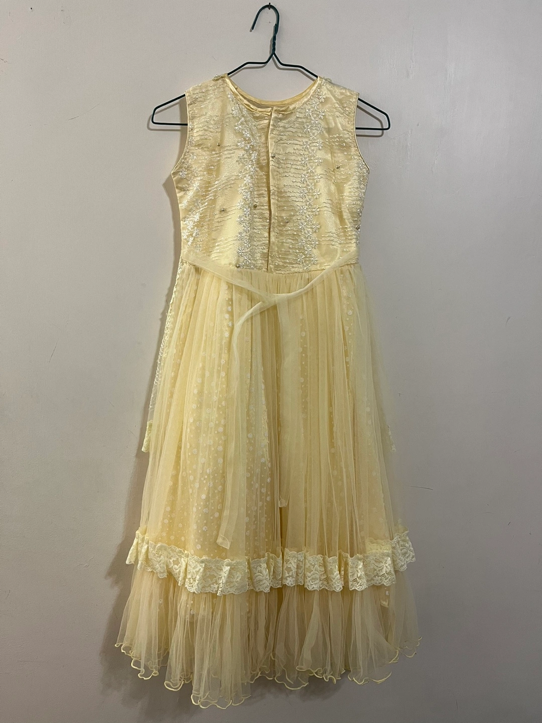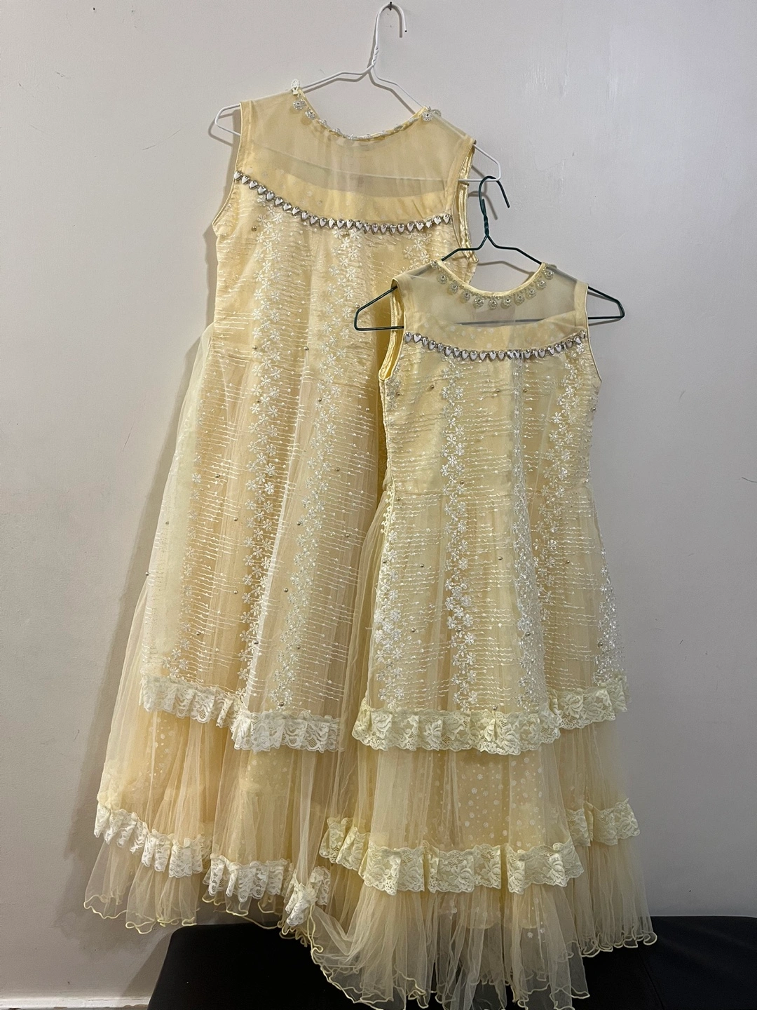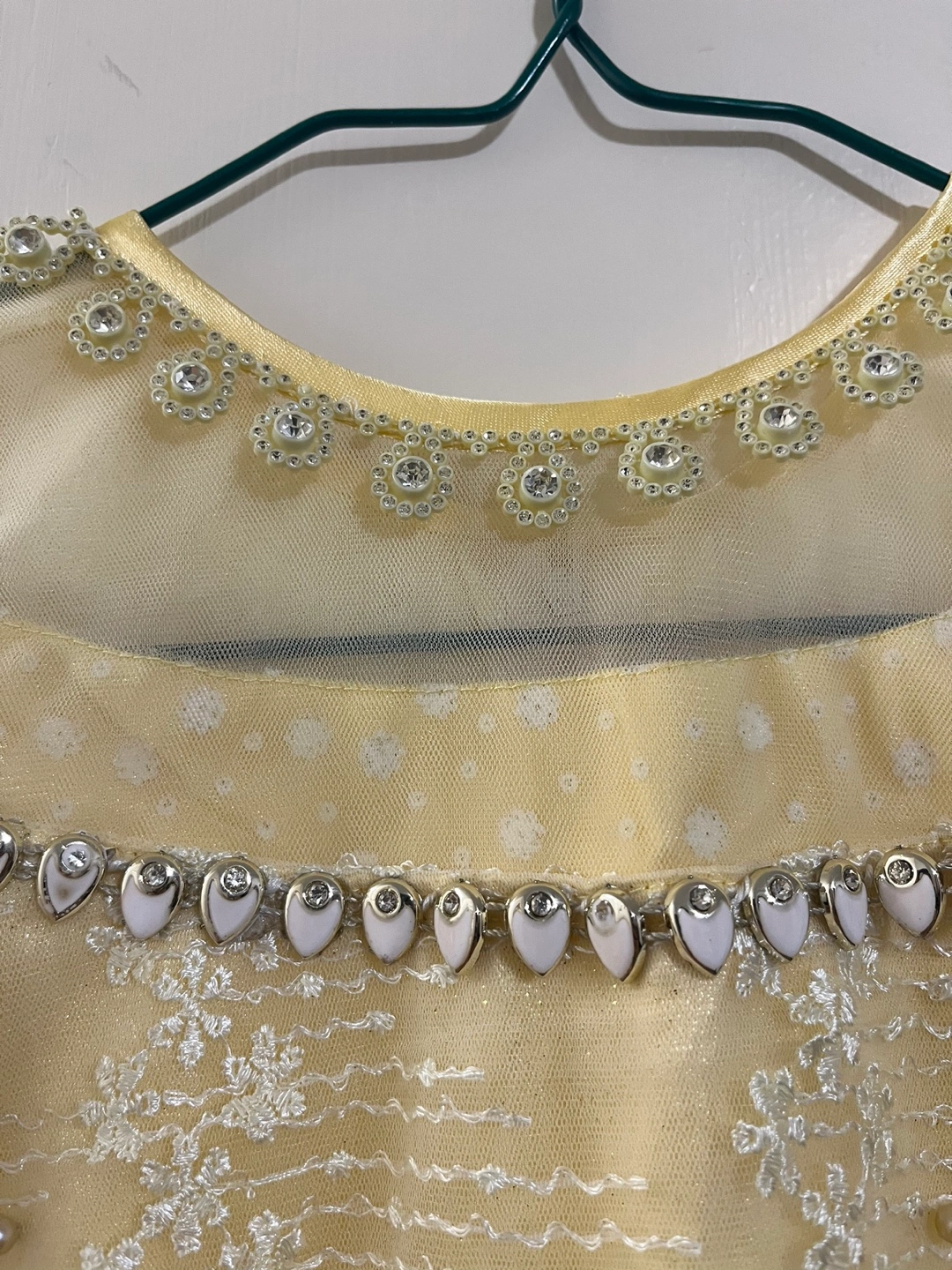 Cream coloured party dress with silver embellishments. Sleeveless with a lace trim at the bottom. Has a tulle skirt. Size 28 and 36 available. Both two dresses for $30. Pickup at Eaton Centre or near Victoria Park Station.
