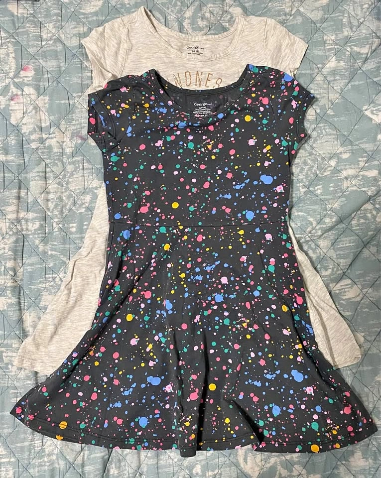 These two short-sleeved shirts are in excellent condition, having only been worn once for a special play at her theatre camp. They carry a little piece of cherished memories.