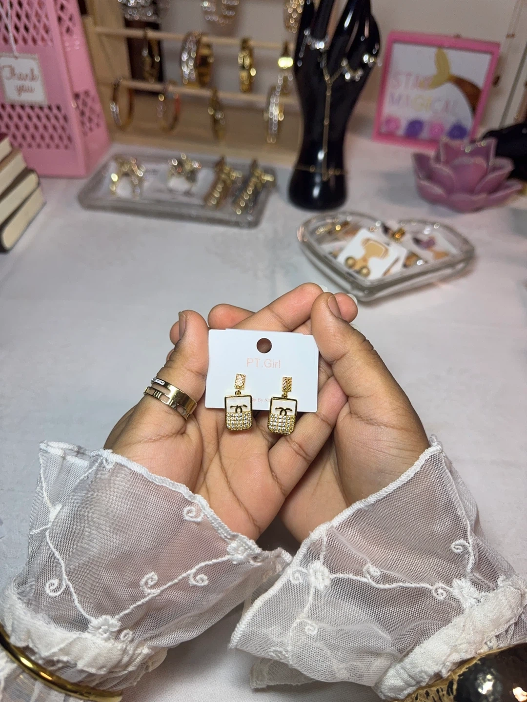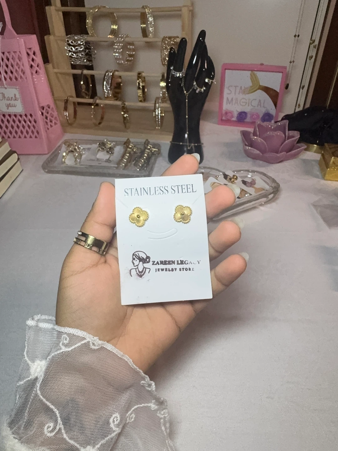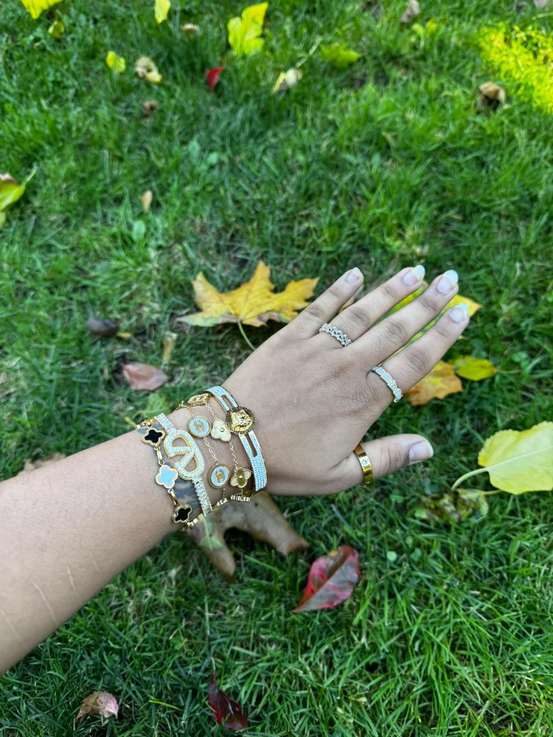 28These are a pair of gold stud earrings from FT Girl. They're in great condition and ready to add a touch of sparkle to your outfit!, beautiful bracelets with bangles and chain. Please contact for more details and dm to discover. Bracelets- 20$ Studs/earings- 10$ Rings - 10$ Chains -15$ Zareen legacy