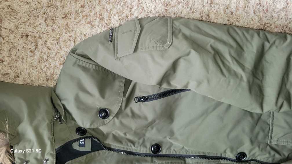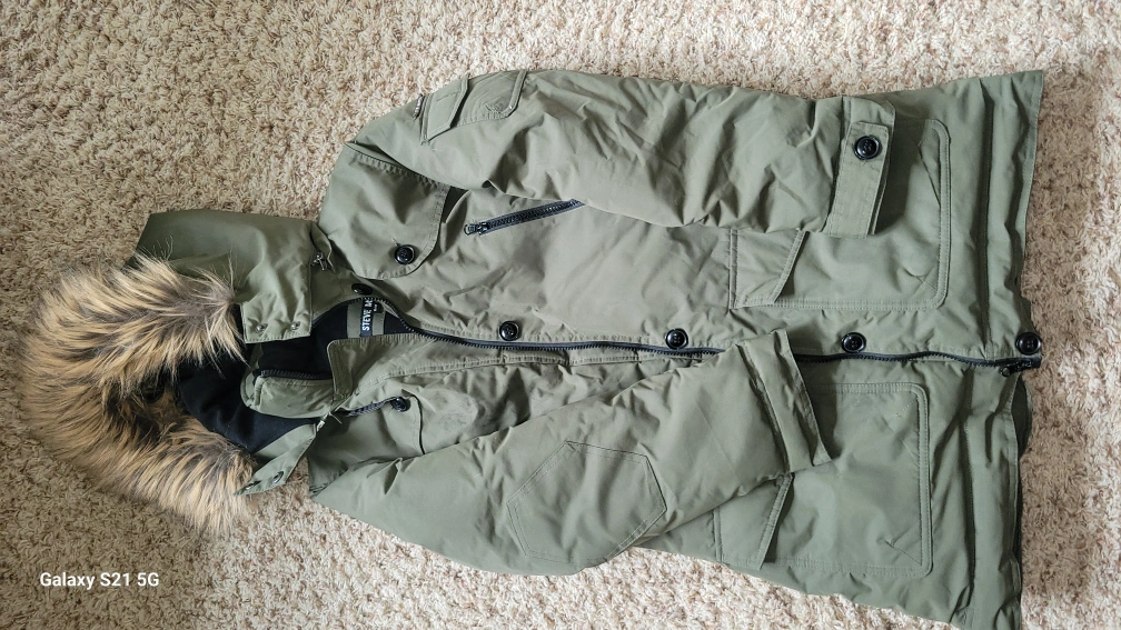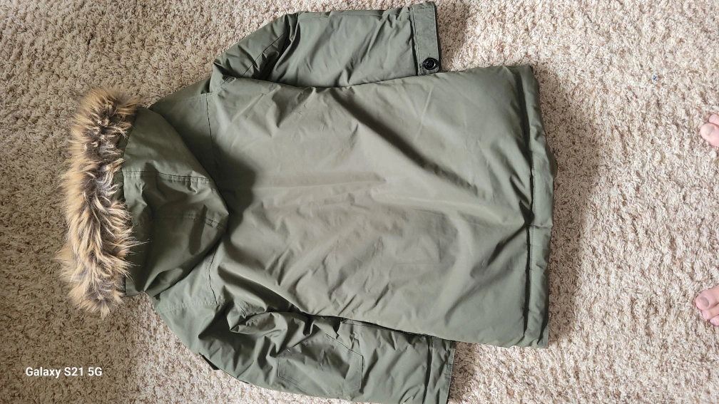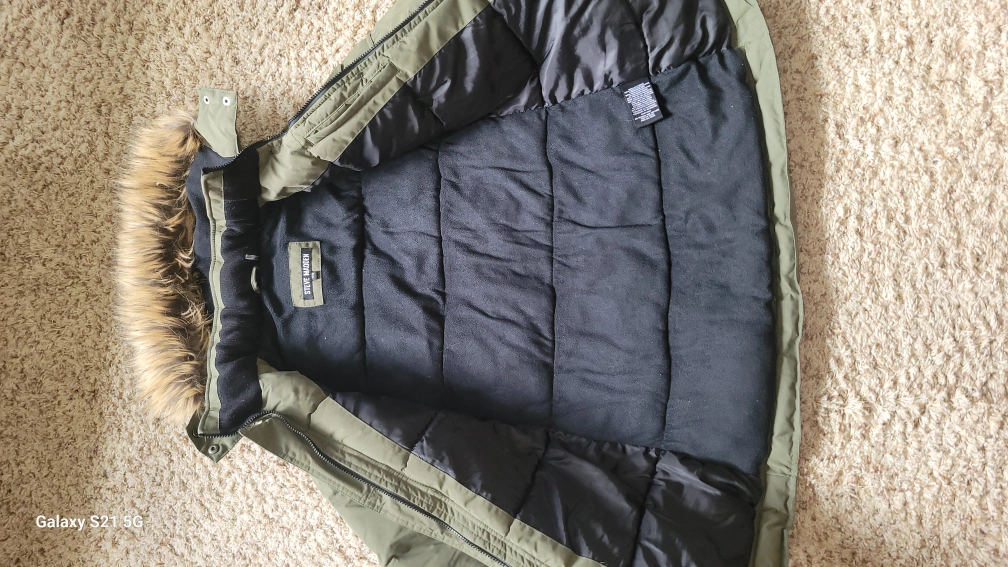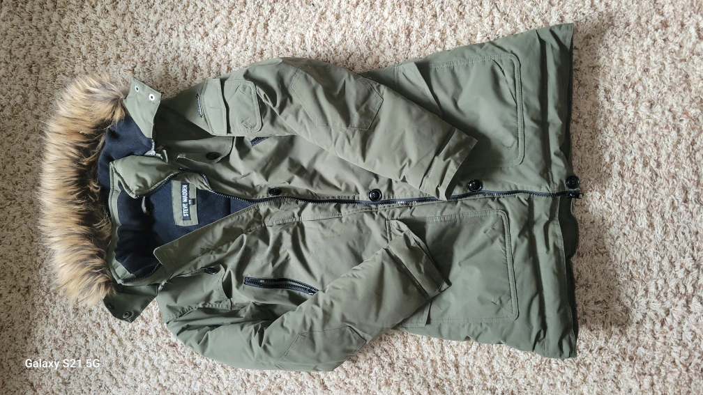 Keep cozy this winter with this Steve Madden parka! It's in great condition and ready for the cold weather. The olive green colour is super versatile, and the faux fur trim adds a nice touch. Size is 14/16. Thick and warm