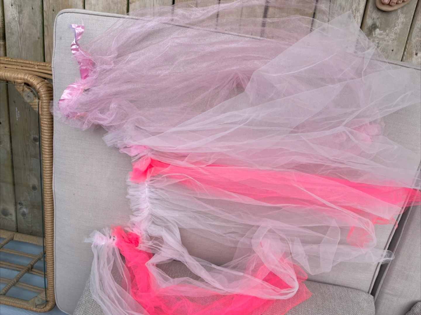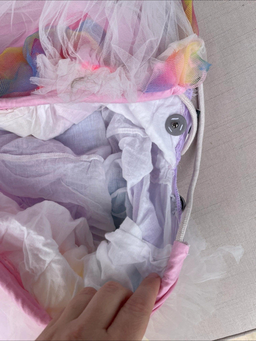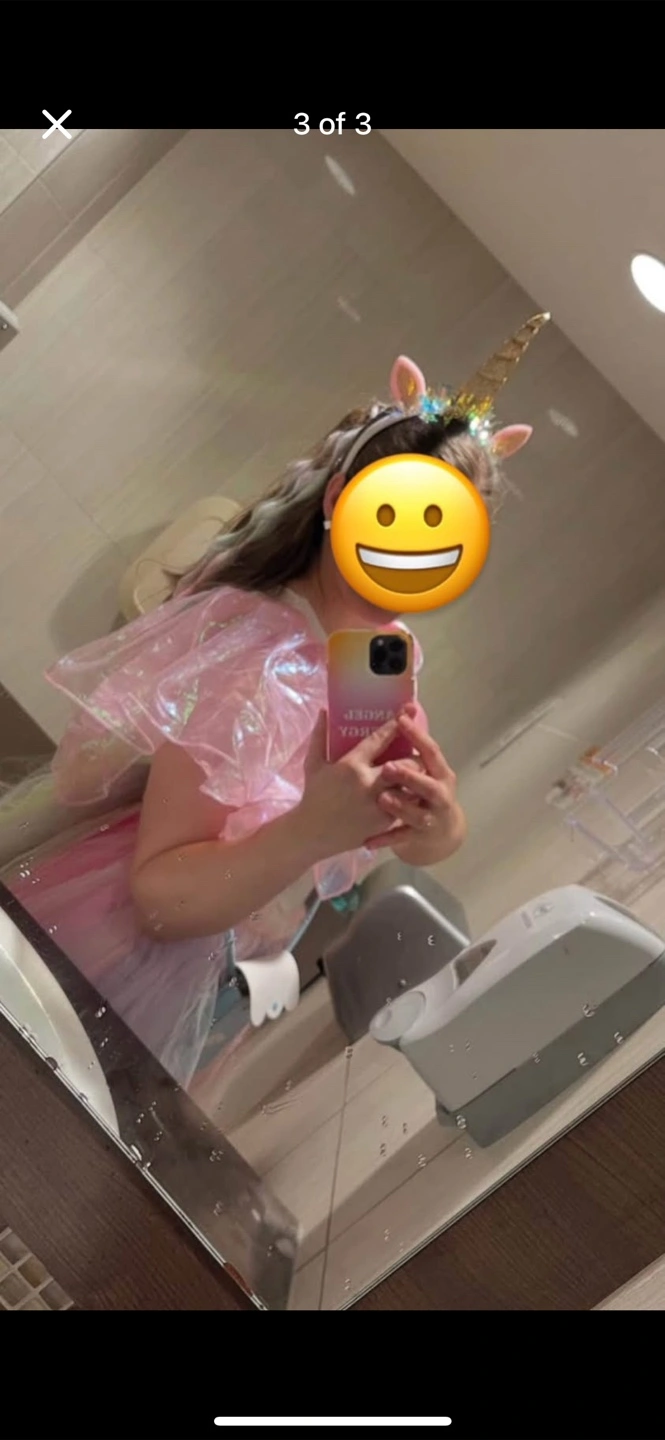 A beautiful rainbow tulle dress for girls. Perfect for dress-up or parties! It's in great condition and ready for a new home. Skirt, additional skirt overlay, bodysuit and headband. No hair Adult Size M-L
