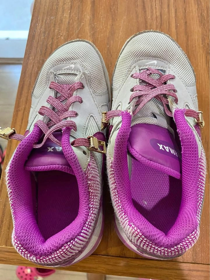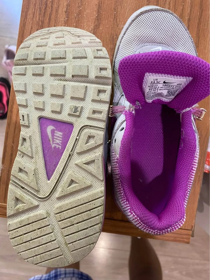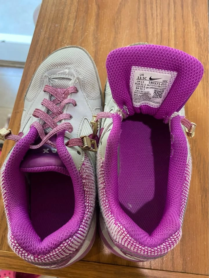 Nike Airmax, size 13.5, with easy buckle-up stretch shoe laces. Used and in excellent condition, as my child outgrew them quickly. Please note cash and pick up only.