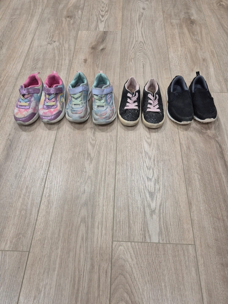 104$3 each or $8 for all I'm offering a lot of girls size 9 shoes! This lot includes a variety of styles perfect for your growing child. These shoes have been used and show signs of wear, but still have plenty of life left for casual wear. Included: - Various sneakers and casual shoes - Size: US 9 Priced to sell! Grab this affordable bundle to keep your little one stylishly footed. Check my other listing for more kids items! Bundle Deals Available.