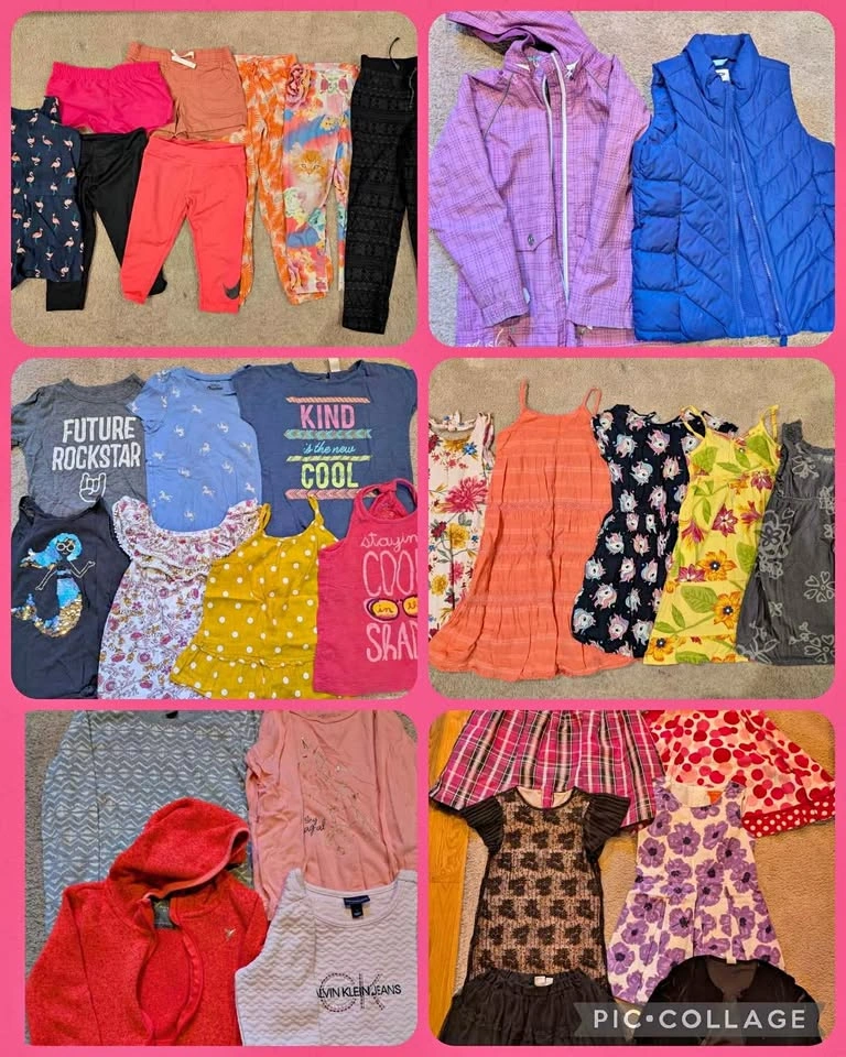 Girls size 6 / 7 clothing lot. 32 pieces for $30 *1 romper *4 shorts *3 pants *5 sundresses *2 long sleeved tees *2 sweatshirts *1 fleece lined raincoat *1 puffy vest *3 t-shirts *4 tanks *4 fancy dresses *1 skirt *1 velvet shrug Smoke free pet free home Porch pick up and e-transfer preferred