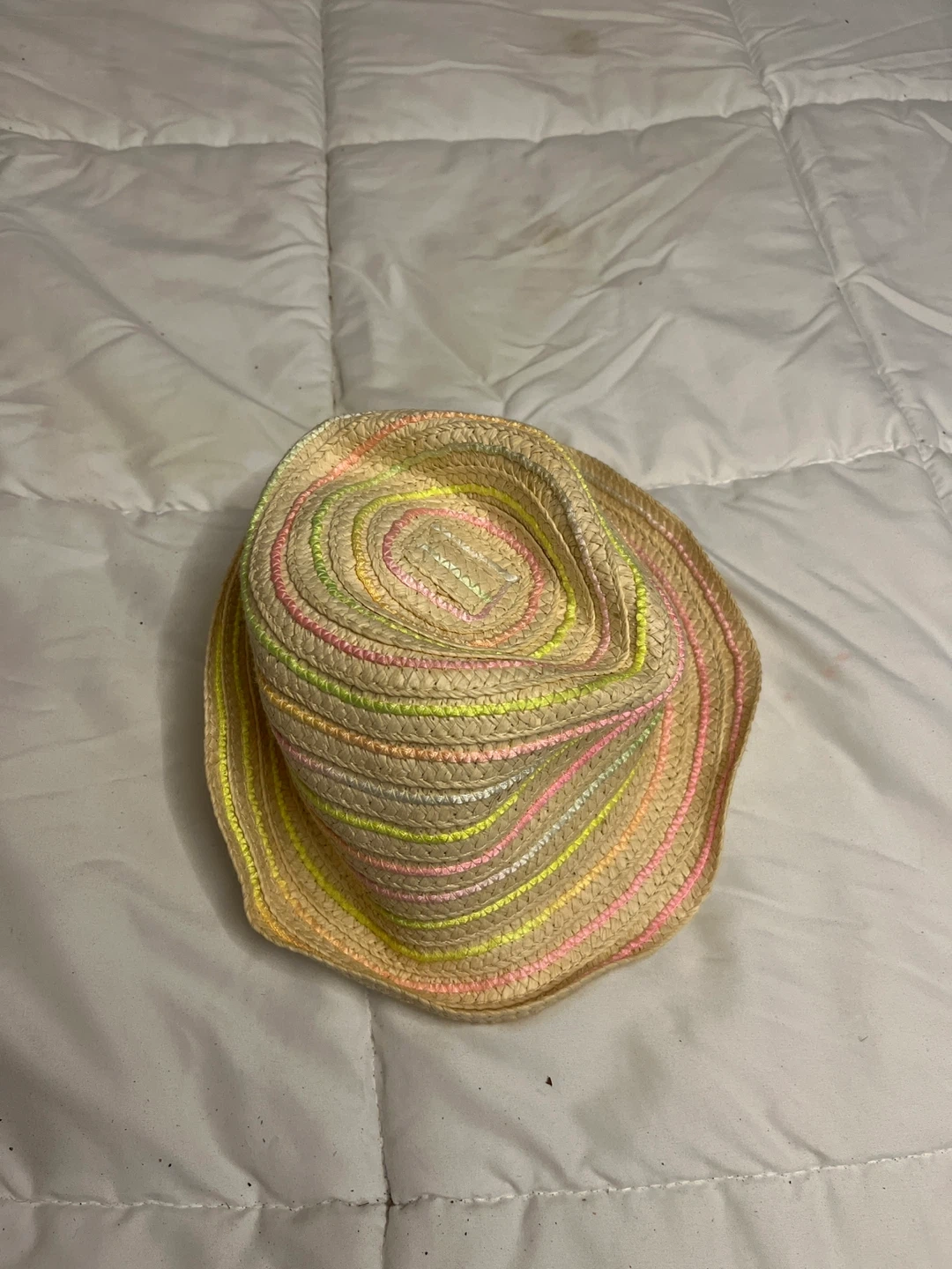 65This multicoloured straw hat is perfect for girls! It's in great condition and ready for a new home. It's a stylish accessory for sunny days!