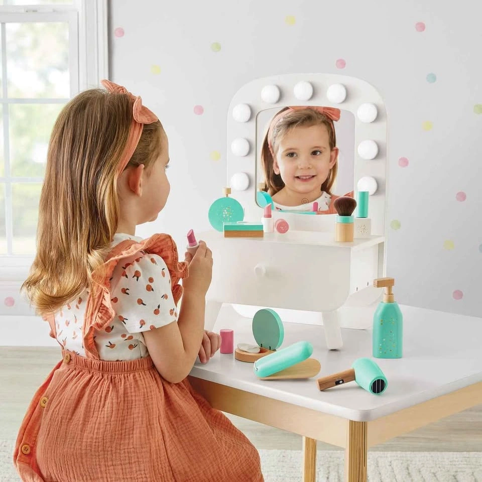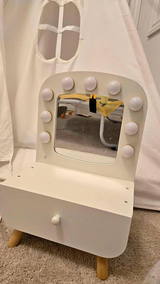 10Assembled Dimensions: L 7.5" x W 11.5" x H 17.125" Weight: 7.7 lbs. No make up toys only the Vanity is for Sale (EUC)