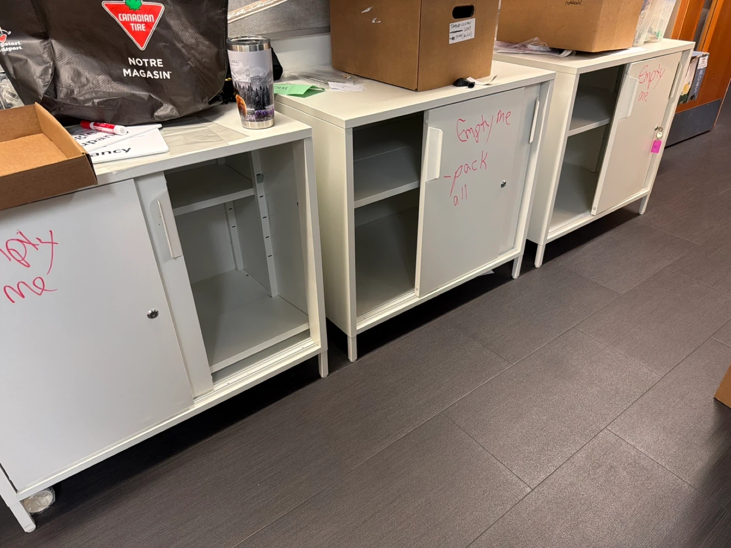 3 matching small sliding door cabinets. They lock, but not very securely. Available M-F 9-4 until Dec 19th. Corner of Beatty and Smithe. No parking, but cut through lane way used by delivery drivers.
