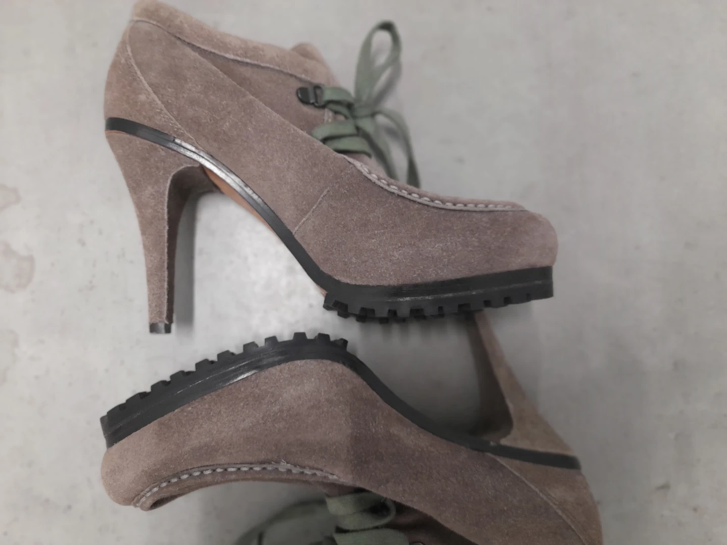 These taupe suede heeled ankle boots feature a stylish lace-up front and a durable lug sole. The heel height offers a flattering lift. They're a great option for adding a fashionable touch to any outfit, day or night!
