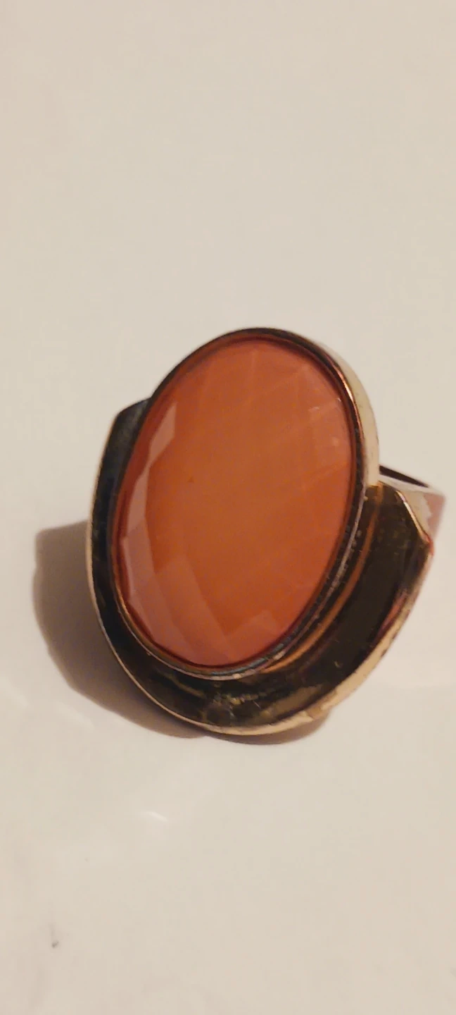 Gold tone ring with large orange stone. Size 8.