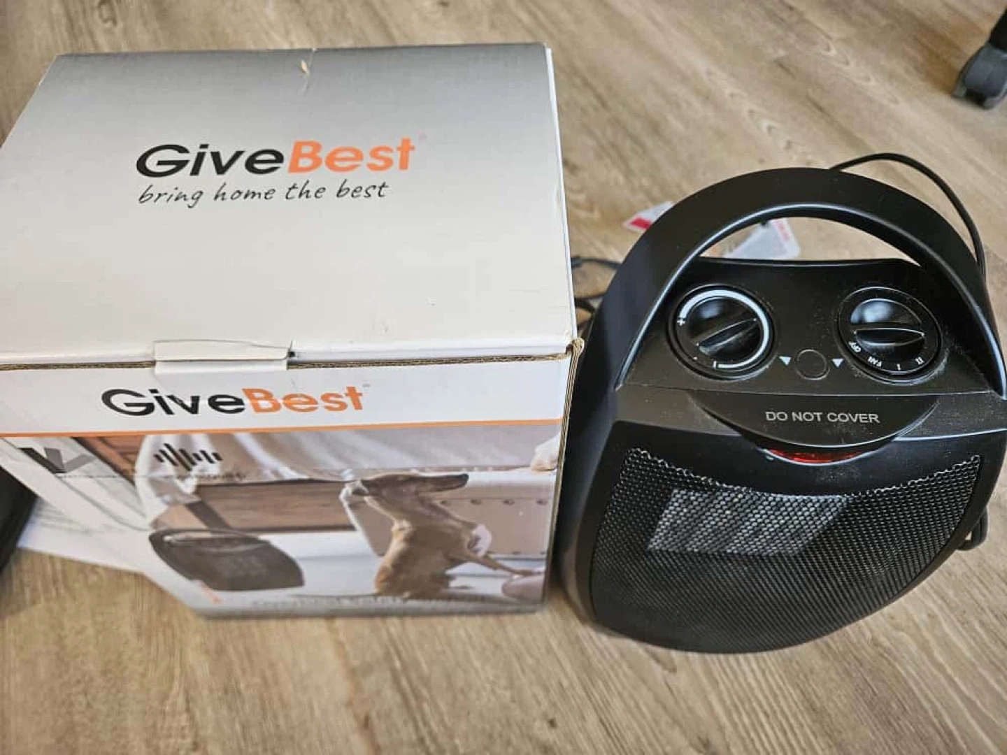 I'm selling a GiveBest portable space heater. It has overheat safety shutoff, auto off when tilted, and an adjustable thermostat with 3 settings. It's a 1500W faster heater.