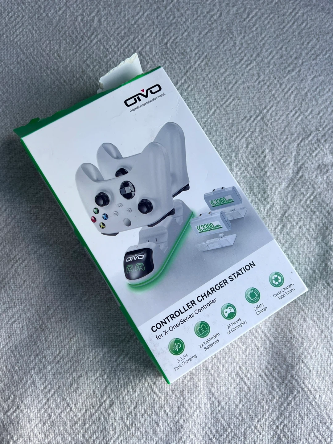 Selling a GIVO controller charger station for Xbox One/Series controllers. It comes with 2 x 1350mAh batteries, offering up to 20 hours of gameplay. This charger station features 3.5H fast charging and supports up to 3500 cycle charges. It's brand new because my friend gave me a new wire controller after I bought it.