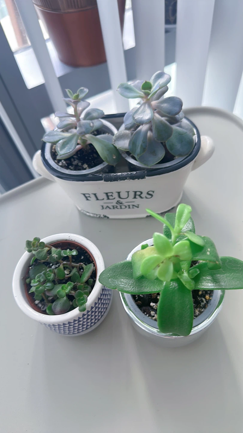 A few potted succulents looking for a new home! They would be a lovely addition to any room. They are easy to take care of and bring a touch of green indoors