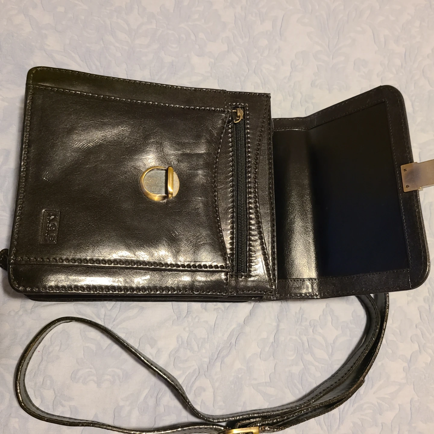 This new KGB organizer bag is crafted from black leather. It features multiple card slots and zippered pockets for your essentials. It's suitable for organizing documents or personal items on the go.