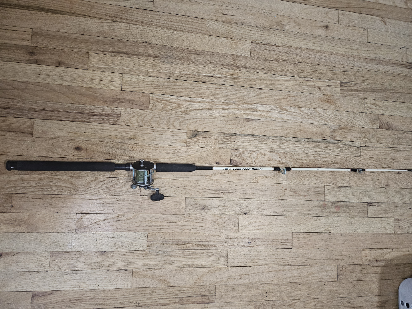 Selling a Penn Peerless No. 9 fishing reel paired with a Penn Long Beach rod. The rod is a 3356C-5'6" model with medium light action, suitable for 12-15 lb lines. Great for your next fishing trip