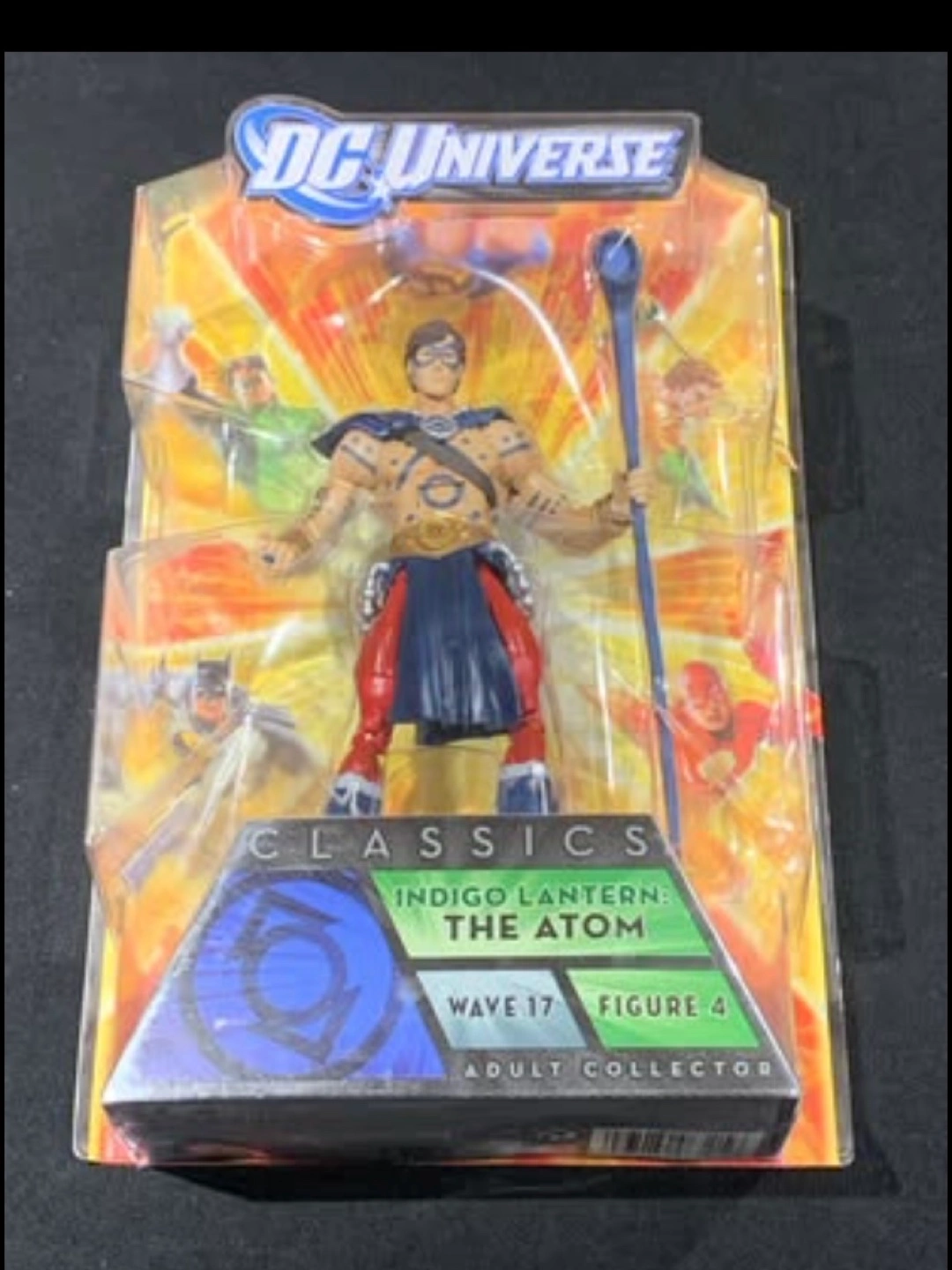 COMPLETE THE COLLECTION WITH DC UNIVERSE THE ATOM INDIGO LANTERN. THE 6-INCH FIGURE HAS SUPERIOR ARTICULATION. A COLLECT AND CONNECT PIECE IS ALSO INCLUDED WITH THE DC UNIVERSE FIGURE AND ONE CAN COLLECT THEM ALL AND CONNECT THEM TO FORM THE ANTI-MONITOR FIGURE.