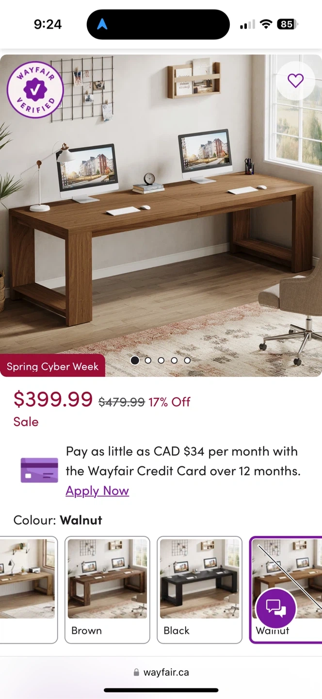 Buy & SellWalnut Extendable 2 Person Desk - AS ISWalnut Extendable 2 Person Desk - AS IS$100This spacious desk comes in a walnut finish. It's extendable for more workspace. Dimensions: 86.61" L x 27.56" W x 29.53" H.ConditionNewWHERE TO MEETDelpark Homes CentreView MapSELLERverifiedYomaNorth Oshawa56142 reviews0 chats·0 favorites·6 viewsSEND CHAT TO SELLERHi Yoma! I’m interested in your listing.Hi Yoma! I’m interested in your listing.Get the Karrot app to chatSign In to chat