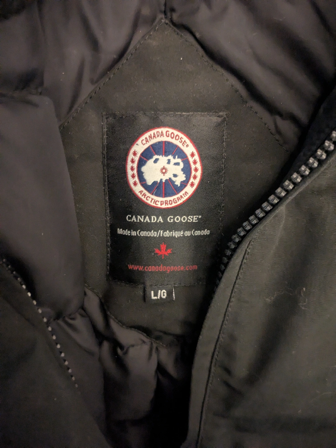 Selling a Canada Goose parka in black, size L/G. It's in good condition, just needs dry cleaning as it is a little dusty. ready to keep you warm this winter! Made in Canada. women
