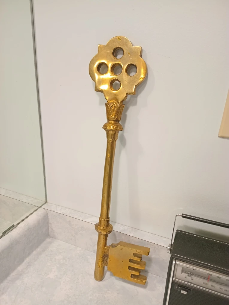 Selling a decorative gold key, perfect for adding a touch of vintage charm to your home decor! It's in great condition and ready to find a new home. Weighs about 4lbs.