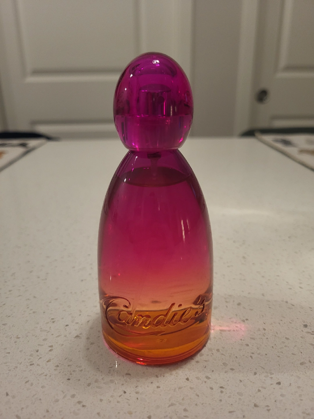 Selling a bottle of Candie's perfume. The bottle has a lovely gradient from pink to orange. Scent has just enough sweetness for that fun night out. It's also a cute bottle for your collection!