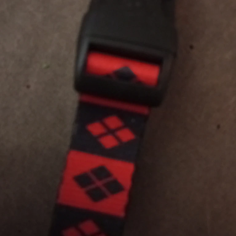 This dog collar features a red and black geometric pattern