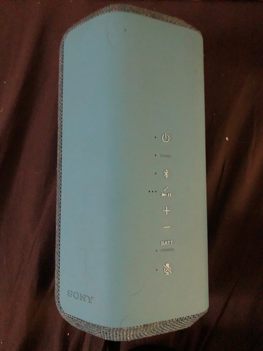 Sony SRS-XE300 X-Series Wireless Portable-Bluetooth-Speaker, IP67 Waterproof, Dustproof and Shockproof with 24 Hour Battery. Portable Bluetooth speaker. Light blue colour. Features volume controls, power button, and microphone.