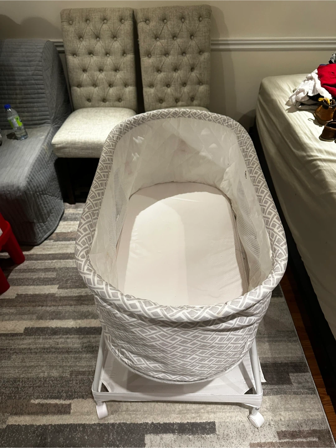 This portable baby bassinet is great for keeping your little one close by. It features a comfortable mattress and breathable mesh sides. It's easy to move around the house with its built-in wheels.