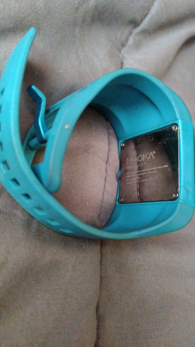 NOOKA Mindstyle watch in a teal color. It's made with a stainless steel back. Water resistant up to 3 ATM.
