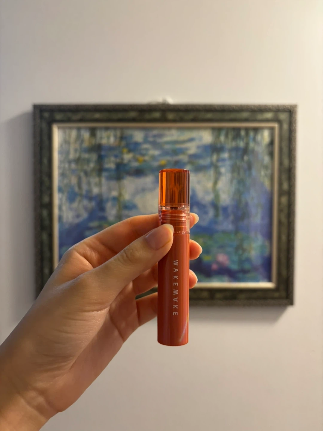 WAKEMAKE lip tint in a beautiful coral shade. It's a popular K-beauty brand. This tint provides a smooth application and long-lasting colour.