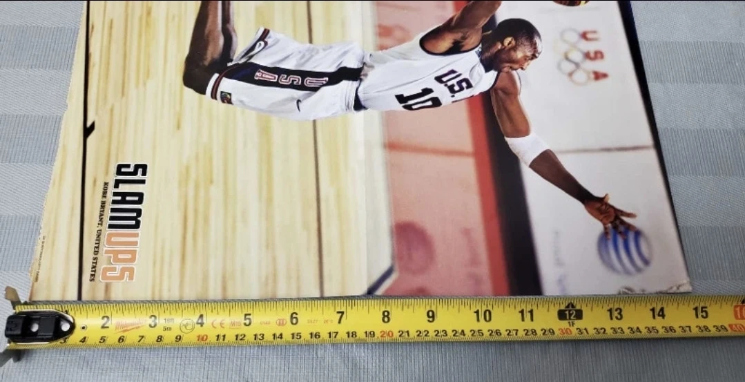Here we have an early 2000's Slam magazine center fold poster of kobe during a team usa Olympic game. Still in good condition for its age. Please see pictures for exact condition and measurements.