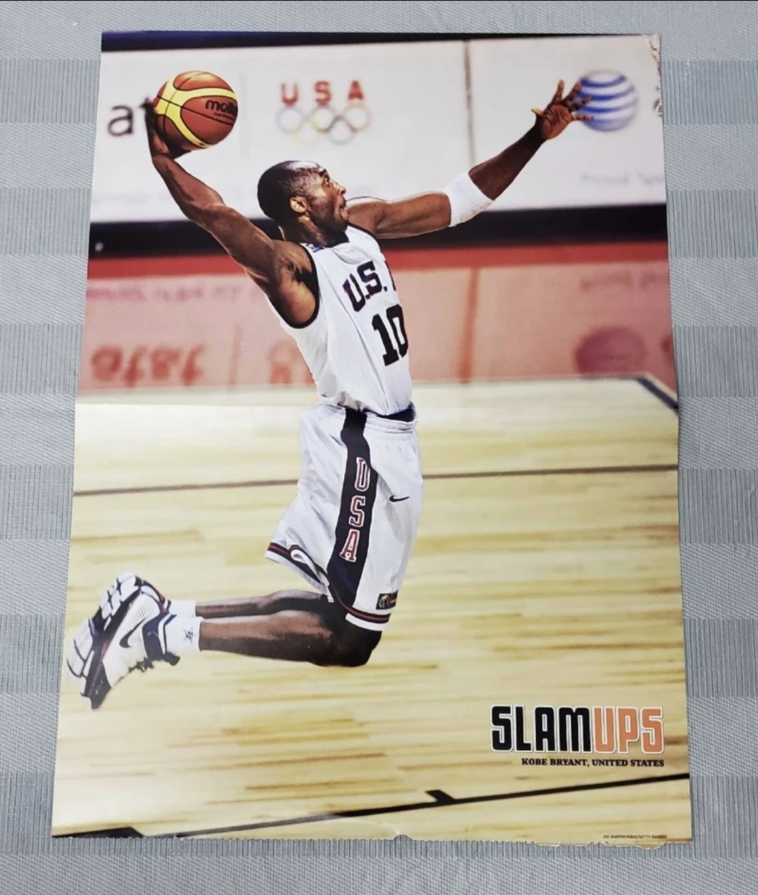 Here we have an early 2000's Slam magazine center fold poster of kobe during a team usa Olympic game. Still in good condition for its age. Please see pictures for exact condition and measurements.