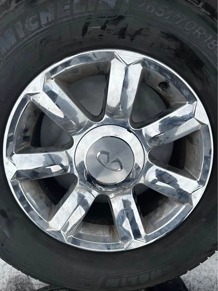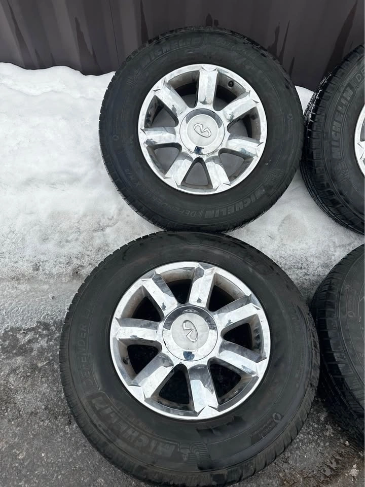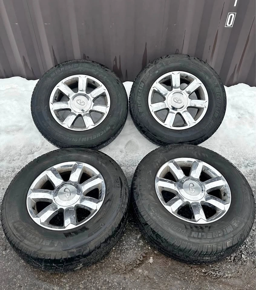 Set of original 18-inch rims from a Nissan or Infiniti QX80/QX56/Armada, fitted with Michelin Defender tires. These came off a 2004-2007 Infiniti QX56. The bolt pattern is 6x139.7. TPMS sensors are included. Tire size is 265/70R18. Asking $899 for the set. All prices are subject to HST. We accept credit, debit, e transfer, & cash! Pickup is in Oakville. Feel free to message if you have any questions!