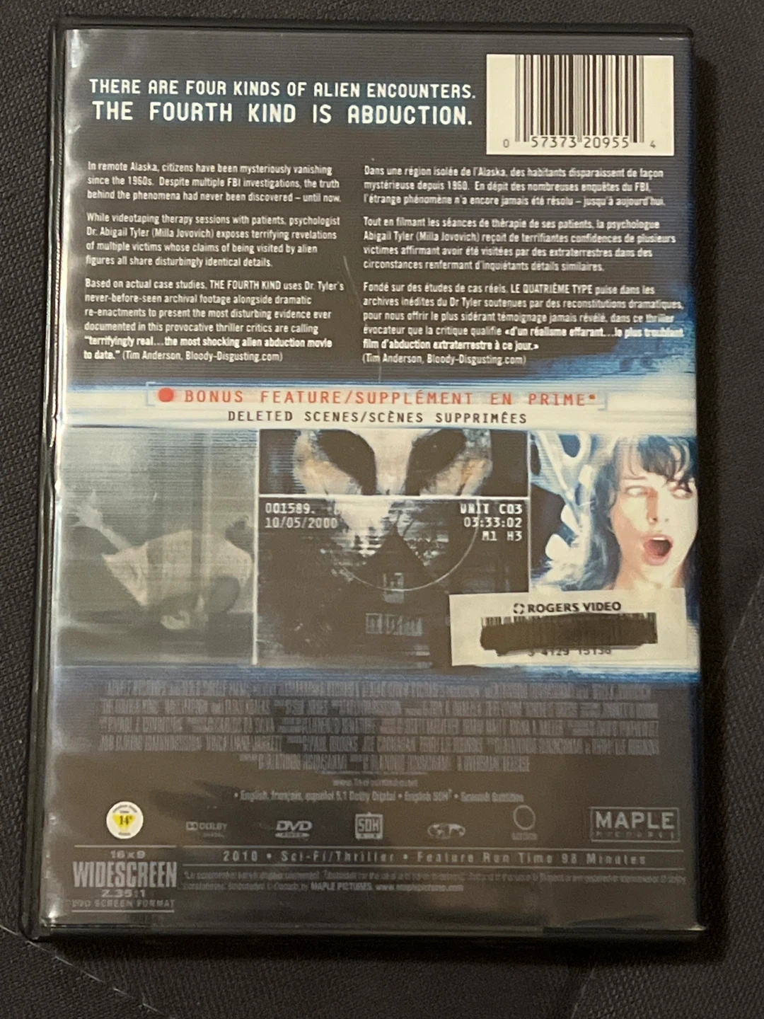 Selling The Fourth Kind on DVD! It's a sci-fi/thriller with a feature run time of 98 minutes. Enjoy!
