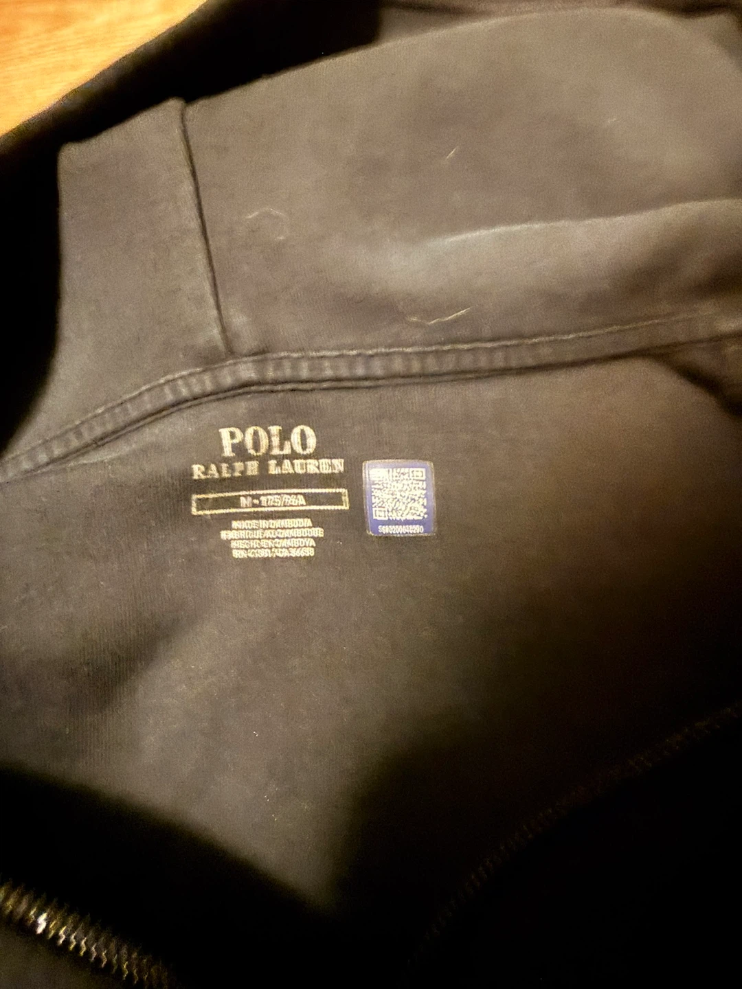 This is a black zip-up hoodie from Polo Ralph Lauren. It's a size medium. The hoodie is made of a comfortable cotton blend.