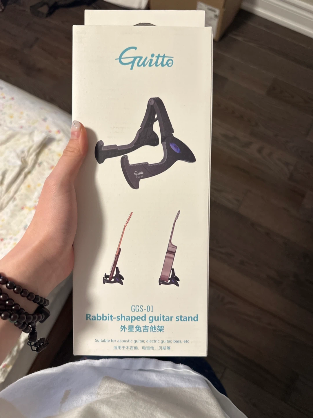 This is a Guitto GGS-01 rabbit-shaped guitar stand. It's suitable for acoustic guitar, electric guitar, and bass. Great for keeping your instrument safe and accessible!
