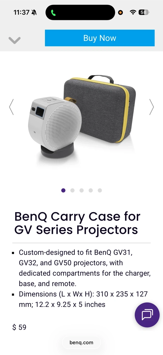 Selling a like-new BenQ GV31 portable projector! It's perfect for movie nights, presentations, or gaming. This projector is lightweight and portable, making it easy to take anywhere. The BenQ carry case for GV series projectors is also included, which has custom-designed compartments for the charger, base, and remote. The case dimensions are 12.2 x 9.25 x 5 inches. Originally $599 plus tax plus $59 for the box