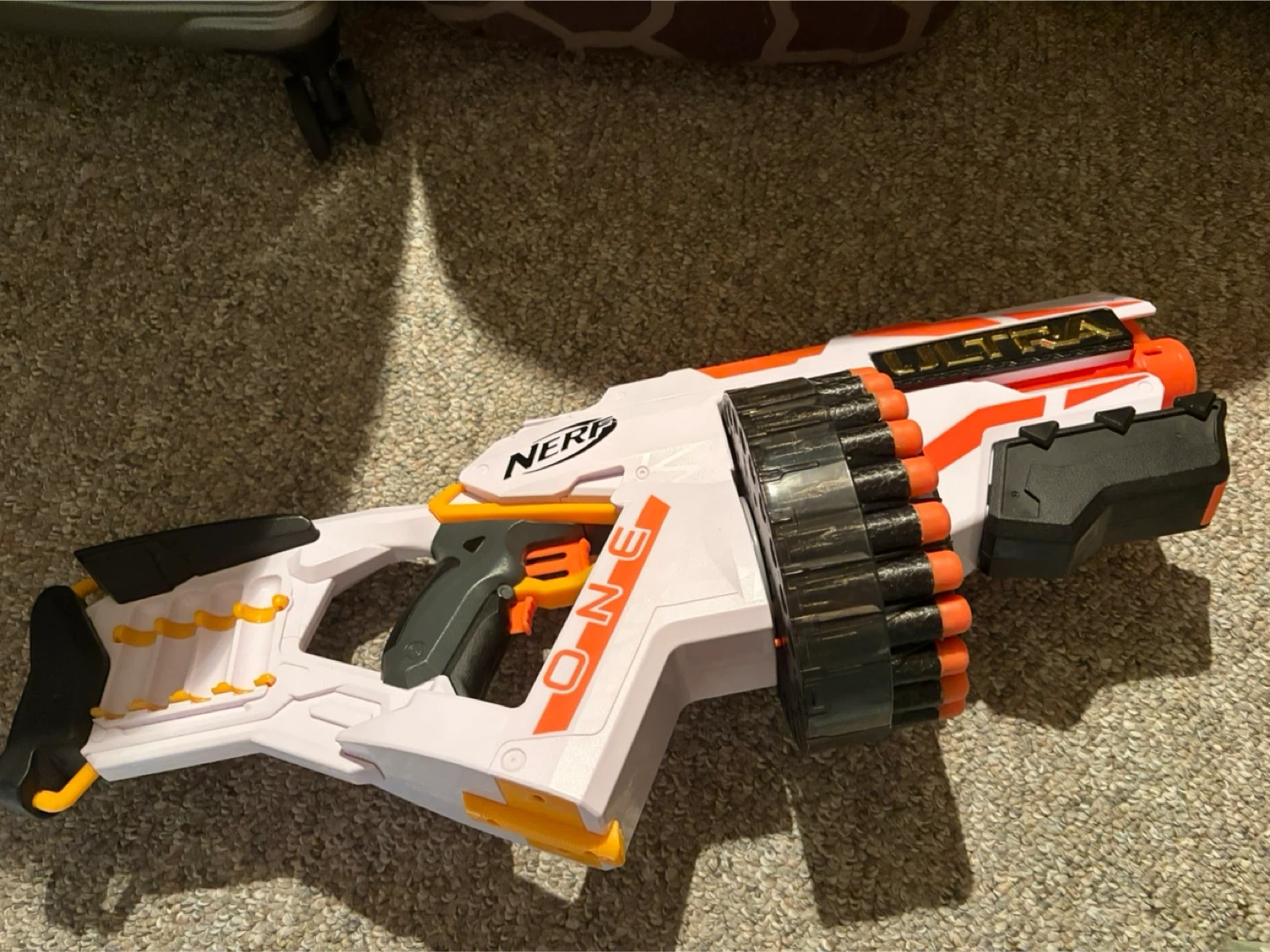 Selling a Nerf Ultra One blaster! It's in great shape and ready for some action-packed fun. The Ultra One features a high-capacity drum for rapid-fire blasting. Get ready to dominate the battlefield!