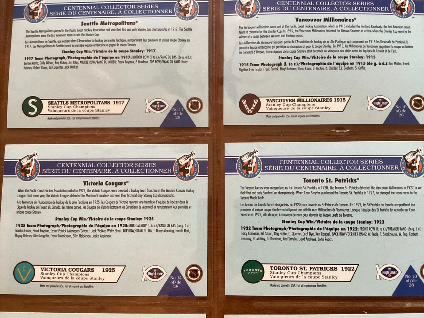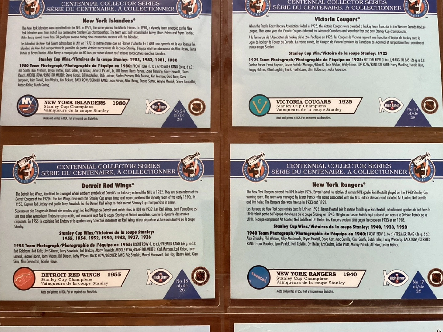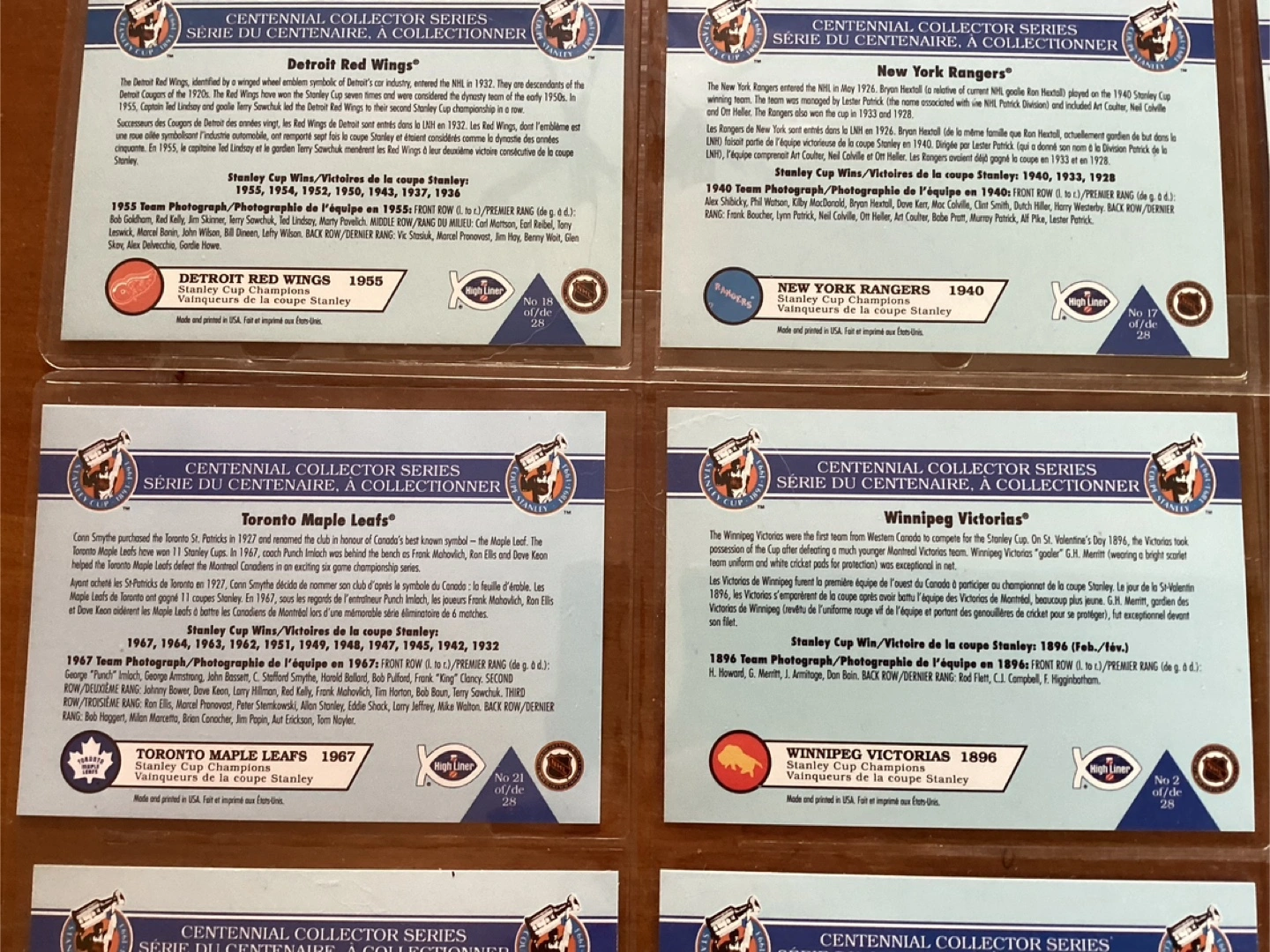 1992 HIGH LINER STANLEY CUP CENTENNIAL COLLECTOR Series Cards