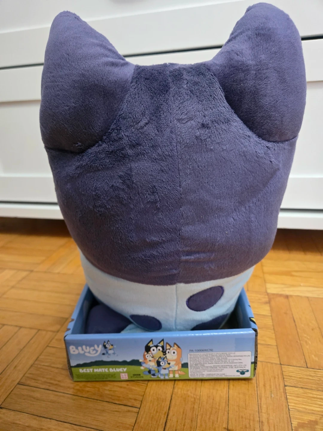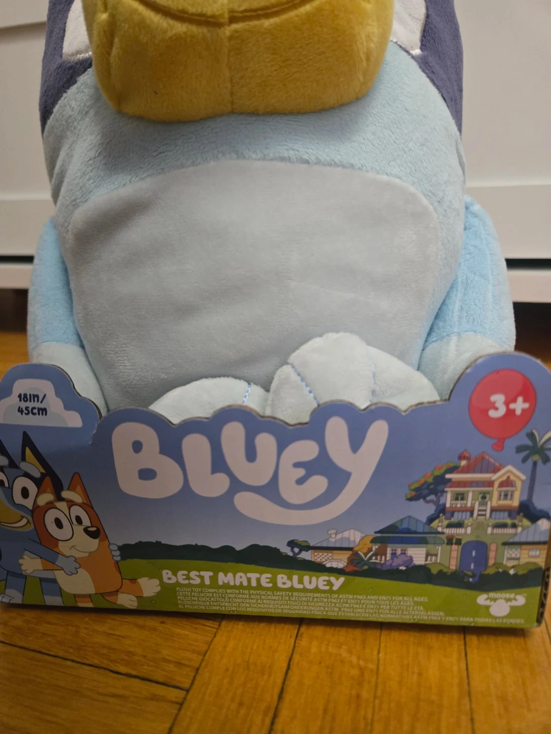 This is the Bluey Best Mate plush toy. It's 18 inches or 45 cm tall. It's suitable for kids aged 3 and up!